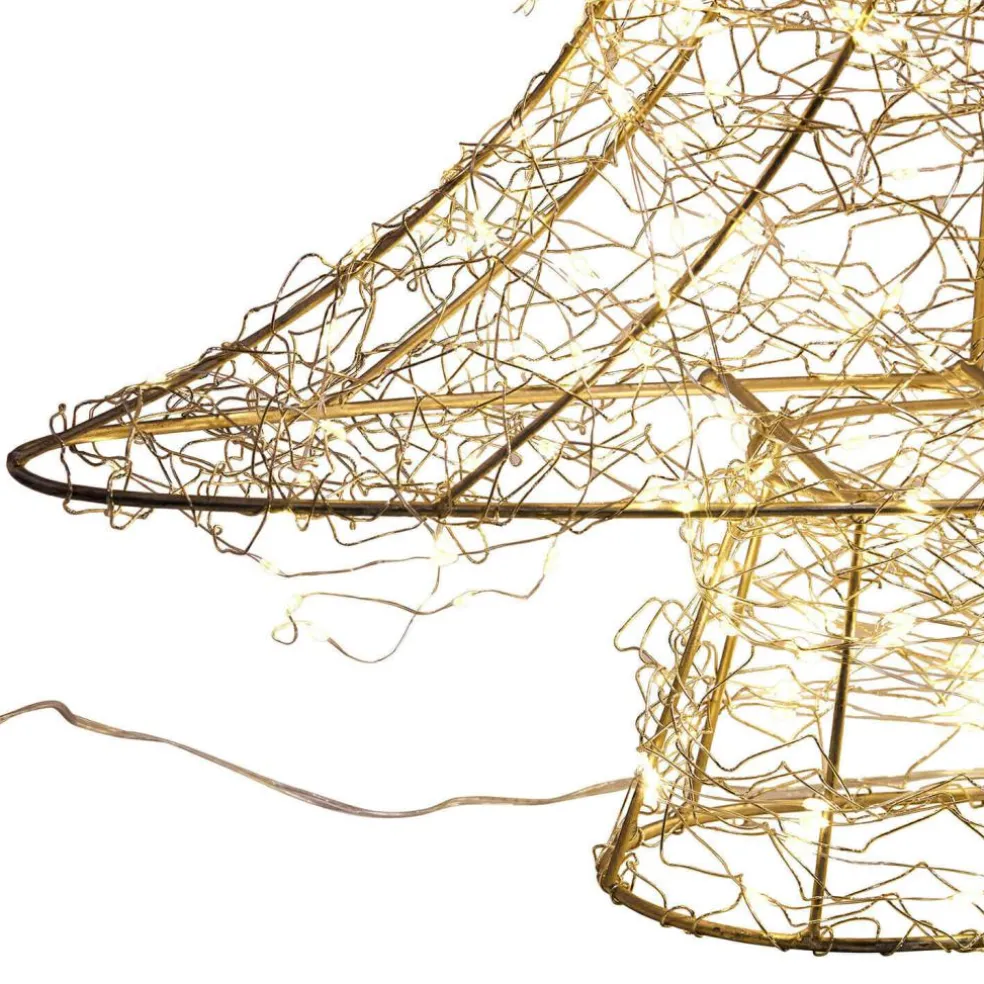 Lassen Sie Ihr Zuhause in festlichem Glanz erstrahlen mit diesem prächtigen LED-Baum. Der Baum, gefertigt aus einem goldfarbenen Eisengestell, ist ca. 80 cm hoch und mit 720 warmweißen LEDs ausgestattet, die eine gemütliche und einladende Atmosphäre schaffen. Die filigrane Struktur und das leuchtende Muster machen diesen Baum zu einem Blickfang in jedem Raum oder Garten. Mit einer 5 Meter langen Zuleitung und der Schutzklasse IP44 ist dieser LED-Baum sowohl für den Innen- als auch für den Außenbereich geeignet, sodass Sie Ihre Festtagsdekoration flexibel gestalten können.