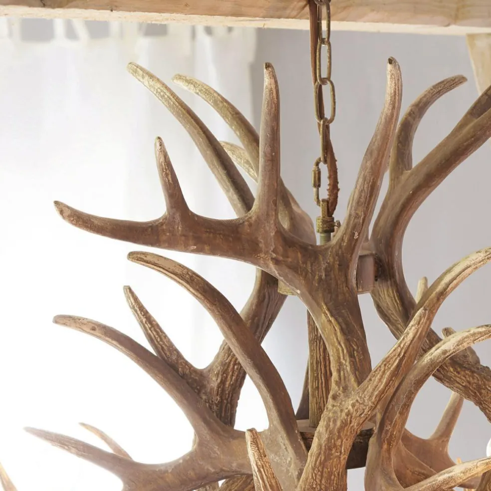 Der Hygge-Trend gilt als Gegenentwurf zur flüchtigen urbanen Lebensweise. Es geht um Entschleunigung und die Rückbesinnung auf natürliche Geborgenheit. All das verkörpert auch dieser einzigartige Kronleuchter, dessen Tragestruktur aus robustem Eisen geschmiedet ist, während die Dekorelemente aus handbemaltem Polyresin gefertigt wurden. Die täuschend echt wirkenden Geweihe sind ein Indiz für besondere Handwerkskunst und verwandeln den Lichtspender in ein Kunstwerk, das seine gesamte Umgebung erdet. Da dieser Leuchter mit neun Fassungen ausgestattet ist, kann er auch sehr große Räume beleuchten. Ein wirklich außergewöhnlicher Lichtspender, der mit sehr viel Liebe zum Detail gestaltet wurde. Ganz gleich, ob Sie ihn im Foyer, Wohn- oder Esszimmer aufhängen – bewundernde Blicke sind diesem Prachtexemplar absolut sicher.
