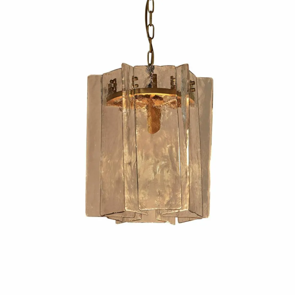 Wie zarte Eisschollen wirken die Glaselemente dieser außergewöhnlichen Hängelampe – jedes Detail erinnert an frostige Wintertage, an das Glitzern von Morgentau auf Eisflächen. Das strukturierte Glas reflektiert das Licht auf eine fast magische Weise, lässt es tanzen und funkeln. Die Lampe strahlt nicht nur Helligkeit aus, sondern auch Charakter und Stilgefühl. Gehalten wird das Ensemble von einer edlen, messingfarbenen Gliederkette, die einen charmanten Kontrast zur Kühle des Glases bildet. Ob in einer modern eingerichteten Umgebung oder im klassischen Ambiente – dieses Modell zieht die Blicke auf sich und verleiht dem Raum eine ganz besondere Note.