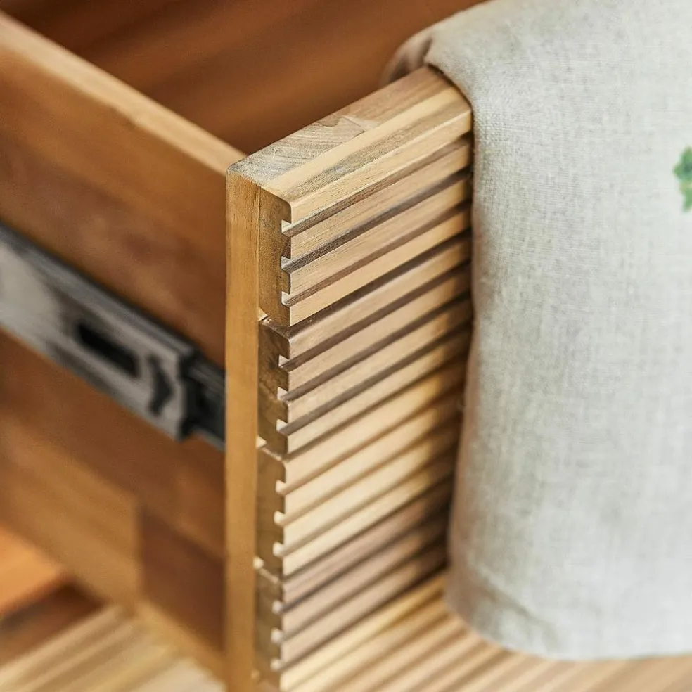 Mit dieser Outdoor-Küchenzeile verwandeln Sie Ihre Terrasse oder den Garten in eine stilvolle und funktionale Freiluftküche. Das Akazienholz überzeugt mit seiner intensiven, natürlichen Farbe und der markanten Lamellenstruktur, die den Möbeln eine spannende, zeitgemäße Optik verleiht. Die Oberfläche aus Beton bietet nicht nur eine ideale Fläche zum Grillen oder Zubereiten von Mahlzeiten, sondern verleiht dem Möbelstück auch eine moderne, industrielle Ausstrahlung. Hinter den Türen und in den drei großen Schubladen verbirgt sich ein großzügiger Stauraum, der Ihnen ausreichend Platz für Grillzubehör, Küchenutensilien oder sogar Vorräte bietet. Mit dieser Küchenzeile holen Sie sich ein Stück Natur und Funktionalität nach draußen.