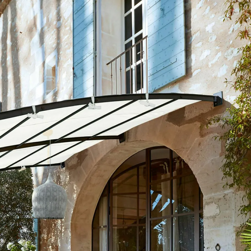 Willkommen in Ihrer neuen Sommerresidenz, die Sie mit einer Atmosphäre stilvoller Wohnlichkeit empfangen wird. Das Dach mildert grelles Sonnenlicht und spendet angenehmen Schatten, während ein sanftes Lüftchen durch die offenen Seiten weht, so dass es auch an heißen Sommertagen nie stickig in der Pergola wird. Für alle, die in ihrer Gartenanlage keinen Platz für einen freistehenden Pavillon haben, wurde diese klassische Anbaupergola konstruiert. Auf einer Seite wird sie an der Hauswand oder einer anderen Wand im Outdoor-Bereich befestigt, sodass das elegant geschwungene Dach von drei Säulen getragen wird. So leicht und luftig die Konstruktion auch wirkt, so stabil und standsicher ist sie, denn sie besteht komplett aus robustem, pulverbeschichtetem Eisen mit bester Wetterbeständigkeit. Für das Dach wurde eine robuste Kunstfaser gewählt, die über ausgezeichnete Robustheit und Wetterfestigkeit verfügt. Doch die Pergola wird Ihr sommerliches Gartenleben nicht nur mit ihren praktischen Vorzügen bereichern, sie wird sich auch als echtes Schmuckstück und Blickmagnet erweisen. Denn Kenner werden sofort bemerken, dass die Ornamentik der Pergola von der französischen Schmiedekunst inspiriert wurde, die allen Objekten diese bewundernswerte Eleganz verleiht. Im Winter raten wir dazu das Dach abzunehmen, damit es Ihnen lange erhalten bleibt.