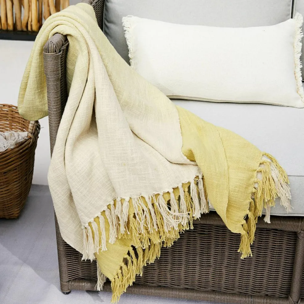 Wohnaccessoires, die die eigenen Vorstellungen erfüllen, sind entscheidend für das persönliche Wohlgefühl. Mit diesem Plaid schenken Sie Ihrer Einrichtung nicht nur eine Extraprise Behaglichkeit, sondern auch eine charaktervolle Note. Der effektvolle Farbverlauf spielt die Hauptrolle in dieser Inszenierung und zeigt sich auf beiden Seiten gleichermaßen schön. Dabei lassen zwei aufeinander abgestimmte Farbtöne das ganz individuelle Bild entstehen. Das natürliche Baumwollgewebe verleiht die lebendige Grobstruktur und verspricht besten Komfort. So liegt die Decke sympathisch weich auf der Haut und sorgt durch ihre Atmungsaktivität für ein angenehmes Körperklima. Gleichzeitig ist sie dünn und leicht und damit für jede Gelegenheit perfekt. Was gibt es also Schöneres, als sich in das Plaid einzuhüllen und entspannte Stunden auf der Couch oder Terrassenlounge zu genießen. Selbst im Urlaub müssen Sie auf das Webplaid nicht verzichten, denn es findet auch in Ihrem Koffer noch Platz.