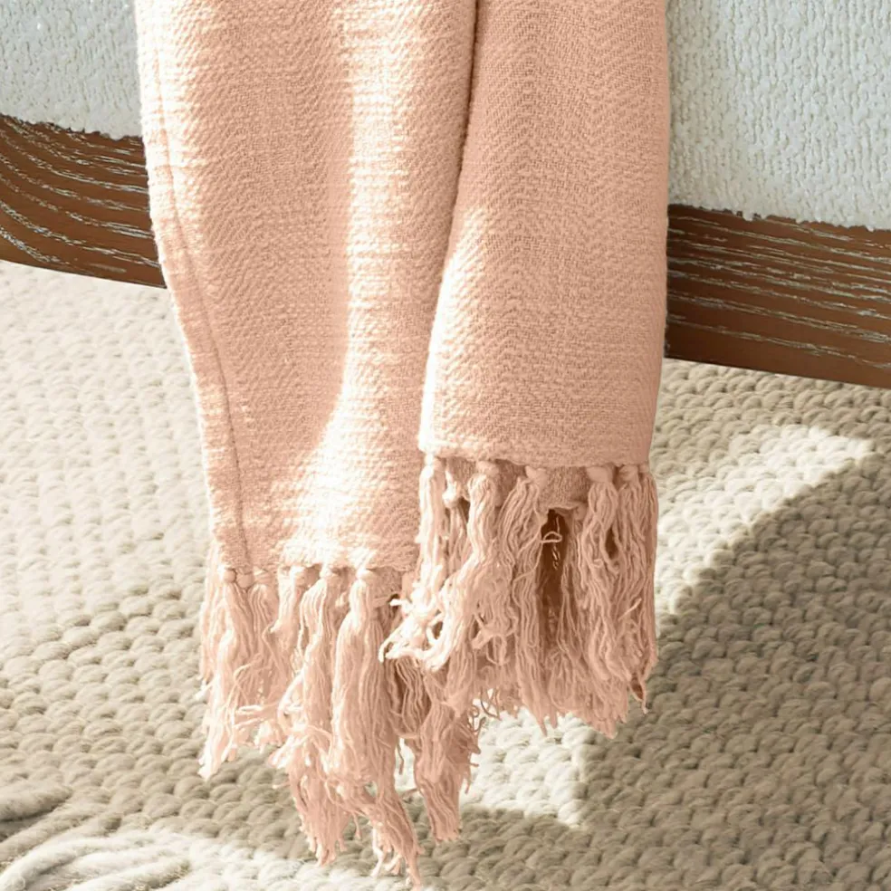 Dieses Plaid vereint Komfort und ästhetische Zurückhaltung in einem stilvollen Design. Gefertigt aus reiner Baumwolle, bietet es eine angenehm weiche Haptik, die zum Einkuscheln einlädt. Die fein gewebte Struktur verleiht dem Plaid eine natürliche Textur, die durch die zarte Farbgebung perfekt abgerundet wird. Dieses Plaid ist nicht nur ein praktischer Begleiter an kühleren Abenden, sondern auch ein dekoratives Element, das Ihren Wohnraum dezent aufwertet. Die Fransen am Rand verleihen dem Plaid einen charmanten, leicht rustikalen Touch, der für zusätzliche Gemütlichkeit sorgt.