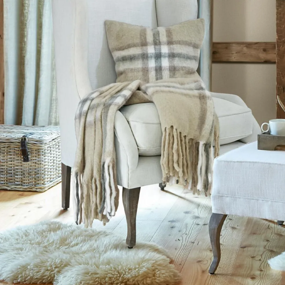Für ein perfektes Wohlfühl-Ambiente sind Wohntextilien gefragt. Dazu gehören nicht nur Vorhänge und Teppiche, sondern auch Dekokissen und Plaids. Denn was gibt es Schöneres, als es sich auf der Couch gemütlich zu machen und in einer weichen Decke zu schwelgen. Dieses hochwertige Plaid präsentiert sich als echter Klassiker – mit einem traditionellen Schottenkaro-Muster, natürlichem Farbspektrum und dekorativem Fransenabschluss. Die hochwertige Wollmischung ist wunderbar weich, leicht und kuschelig – entsprechend schön fließt das Plaid und umhüllt mit wohltuender Wärme. Ein vielseitiges Accessoire, das genau die richtige Dosis Eleganz und Komfort besitzt , die Sie sich wünschen – und dazu noch äußerst dekorativ ist. Ob auf der Couch, auf dem Lesesessel oder auf der Bank im Flur. Und wenn der gesellige Abend auf der Terrasse doch etwas länger wird, ist das Plaid auch ein willkommener Wärmespender für Ihre Gäste.
