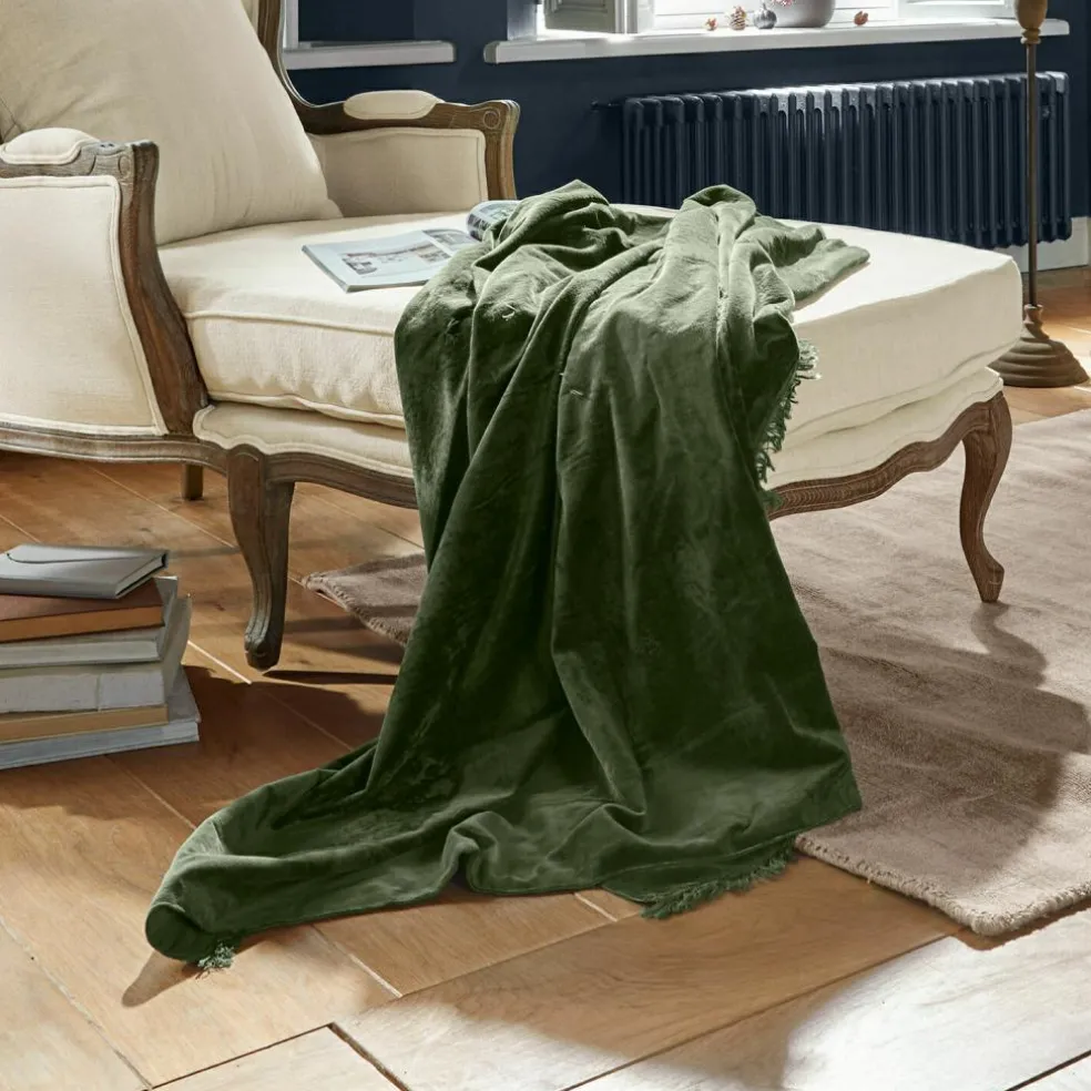 Dieses reizende Plaid ist ebenso dekorativ wie auch kuschelig. Es besteht aus streichelweichem, edlen Baumwollsamt auf der einen Seite und glatter, normaler Baumwolle auf der anderen. Umrande wird das schöne Stück von einem reizenden Saumabschluss mit Fransen. Die stilvolle Farbgebung macht das Plaid zum Highlight auf der Couch oder im Bett, wo es hiermit wunderbar gemütlich wird. Kuscheln Sie sich vielleicht mit einem guten Buch ein oder verträumen Sie einfach die Stunden. Auch als Überwurf für Sofa und Bett schafft es eine schöne und ordentliche Atmosphäre. Dieses elegante Plaid ist einfach ein Lieblingsstück, welches bestens zu einem nostalgischen Ambiente passt.