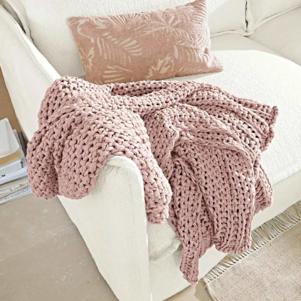 Mit diesem Plaid aus reiner Baumwolle holen Sie sich ein Stück pure Gemütlichkeit nach Hause. Die grob gestrickte Struktur verleiht dem Plaid eine besonders charmante Optik, die sich mühelos in jede Einrichtung einfügt. Ob als wärmende Decke auf dem Sofa oder als stilvolles Wohnaccessoire im Schlafzimmer – dieses Plaid vereint Funktionalität mit stilvollem Design. Das natürliche Material sorgt zudem für ein angenehm weiches Hautgefühl und macht es zur perfekten Wahl für kühle Abende.