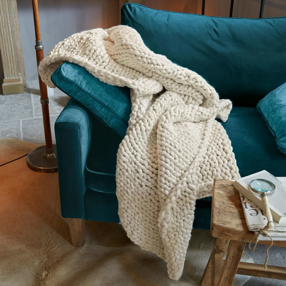 Mit einem Plaid bringen Sie immer ein Stück Wohlfühl-Feeling in Ihr Ambiente. Diese rustikal anmutende Grobstrick-Variante ist nicht nur zum Kuscheln schön, sondern auch ein äußerst dekorativer Hingucker. Grober Strick ist der Inbegriff der neuen Gemütlichkeit und gehört im Wohnaccessoire-Bereich zu den Trendsettern. Dieser ist jedoch aufwendig von Hand gewebt verwöhnt die Decke mit einer hochwertigen Wollmischung, die weich, warm und formbeständig ist. Markante Knotenmuster rundum verleihen dem glatten Strick-Muster einen gelungenen Rahmen, aber auch mehr Individualität und Charakter. Eigentlich bietet dieses edle Strickplaid alles, was Sie zum ganz persönlichen Wohngefühl brauchen. In kombifreundlichen Farben lässt es keine Wünsche offen und passt sich jedem Interieur ideal an. Hüllen Sie sich ein in diese wunderbare Kuscheldecke und genießen Sie Ihre Mußestunden mit einem spannenden Buch auf der Couch oder Ihrem Lieblingssessel.