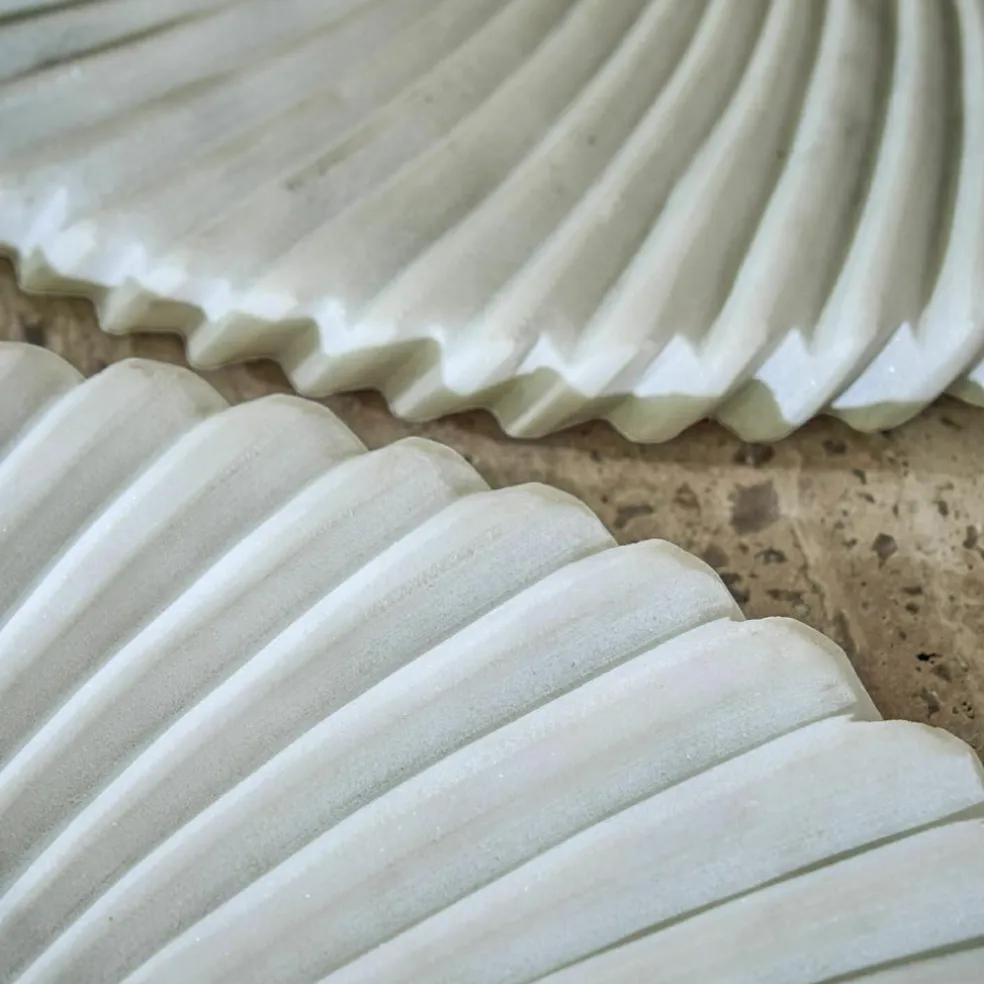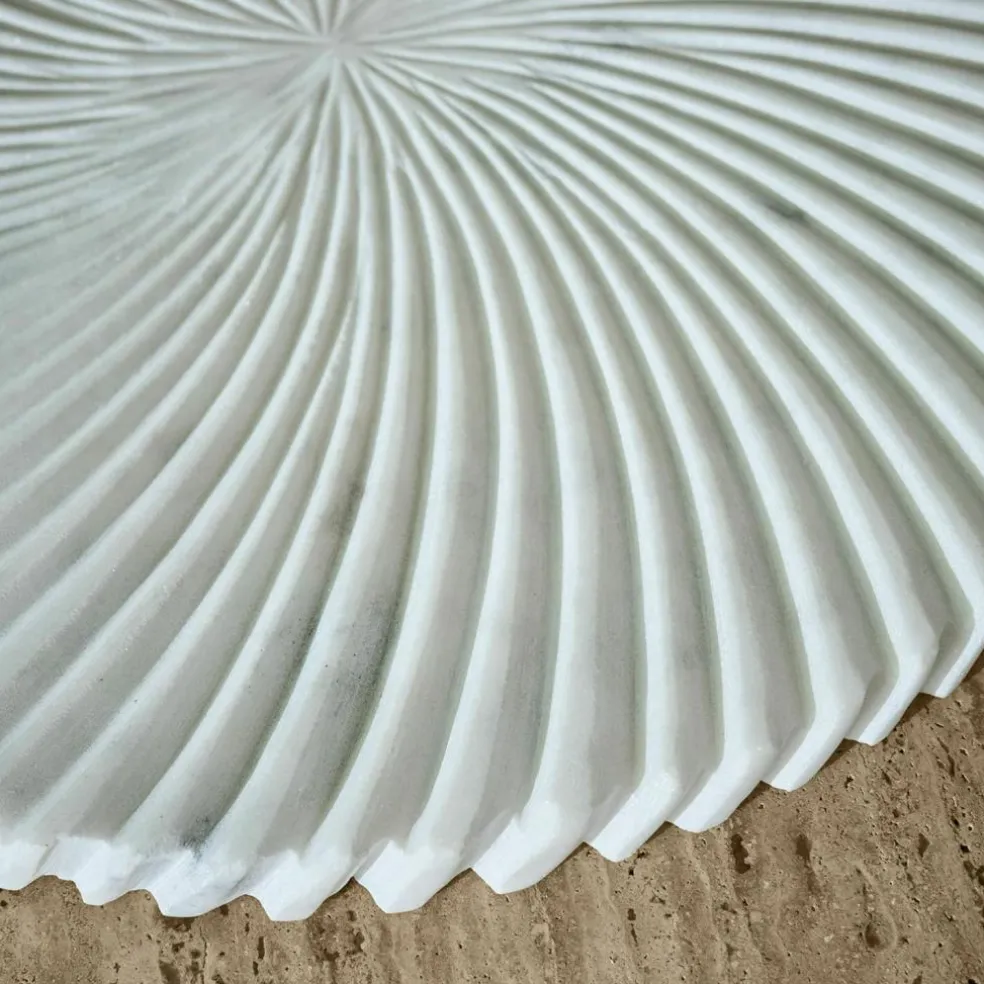 Wie aus einem Guss und doch voller Bewegung: Die runden Marmorplatten im 2er-Set faszinieren mit einer hypnotisch wirkenden Spirale, die sich von der Mitte bis zum fein gezackten Rand zieht. Die sanft geschwungene Oberfläche lässt das Licht auf faszinierende Weise tanzen – je nach Perspektive entstehen wechselnde Schattenspiele. Kleine Farbnuancen, feine Adern und natürliche Einschlüsse erzählen die Geschichte des Steins und unterstreichen den authentischen Charakter. Ob auf Sideboards, Couchtischen oder der festlichen Tafel – diese Platten sind mehr als Dekoration: Sie sind ein Statement für stilvolle Natürlichkeit.