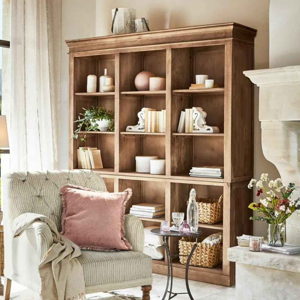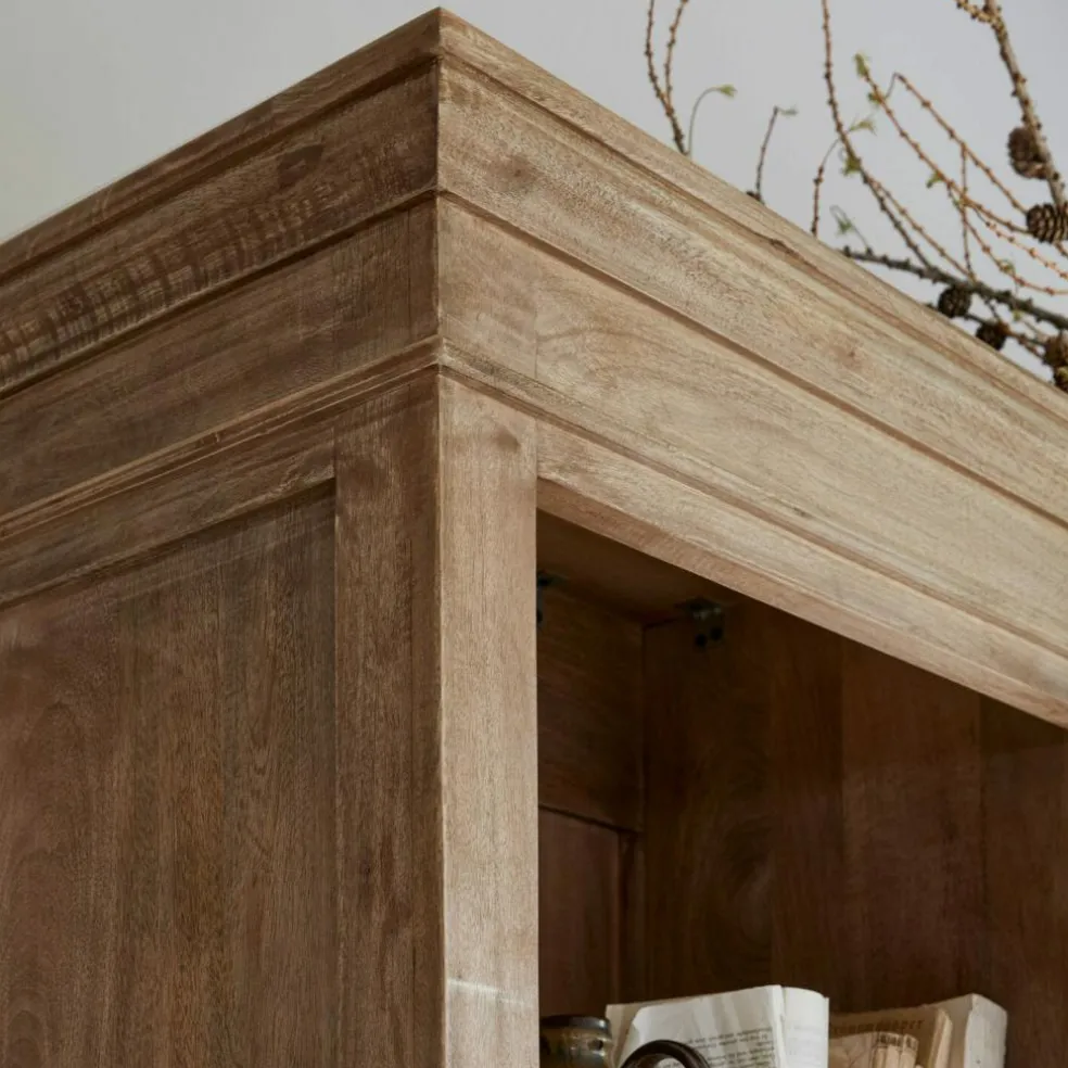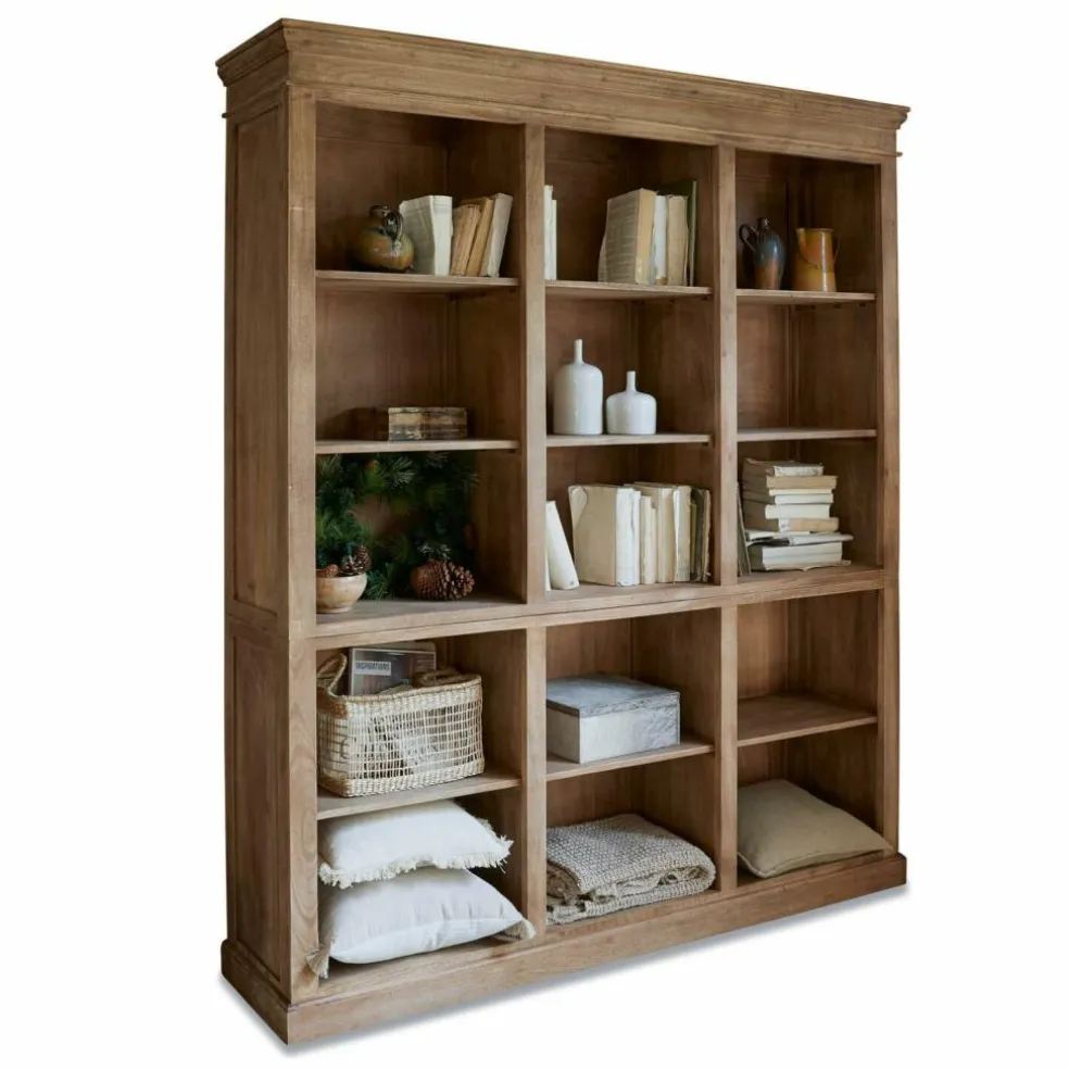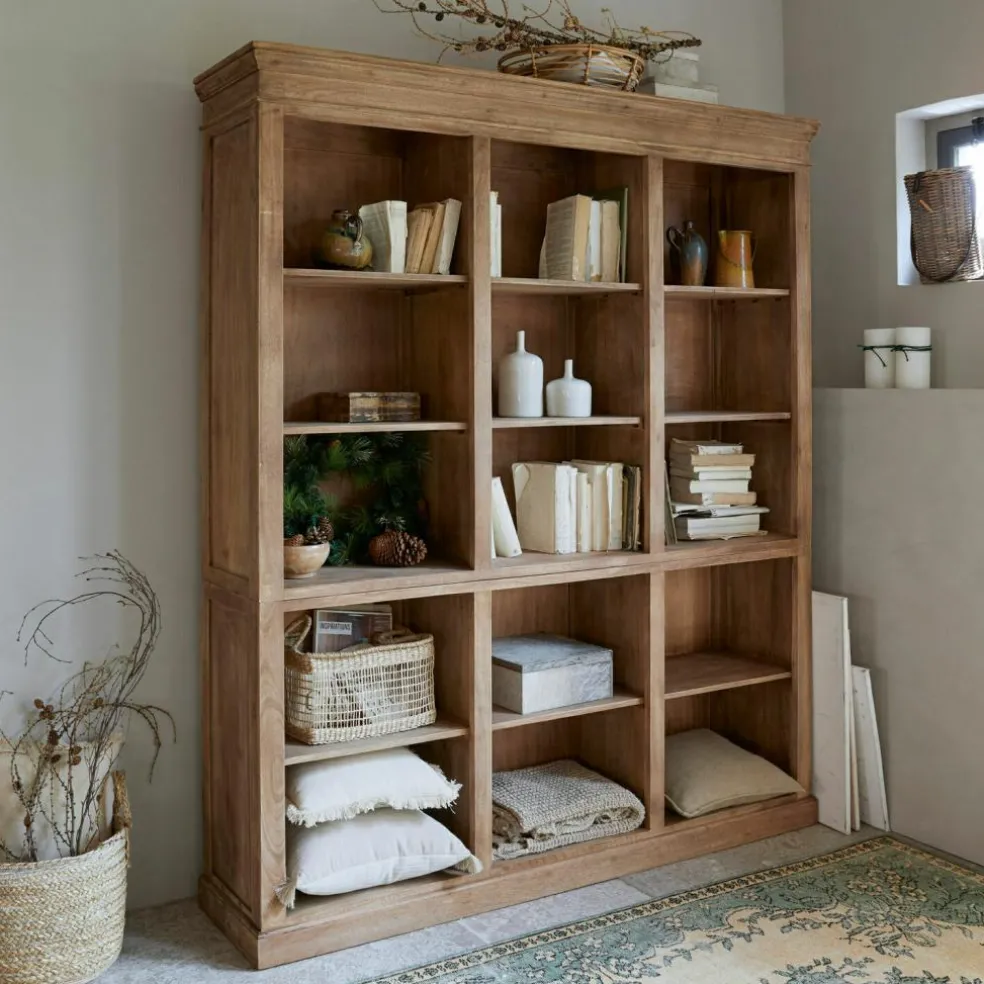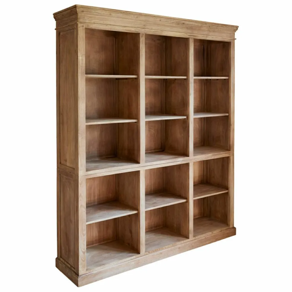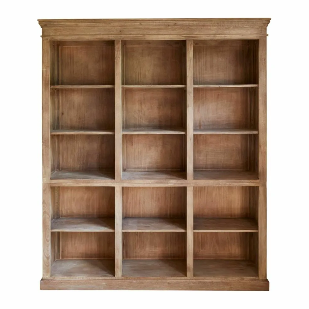 Wer Bücher liebt, wird beim Anblick dieses Regals ein angenehmes Kribbeln im Bauch verspüren und schon in Gedanken mit dem Einräumen beginnen. In diese Fächer kommen die Sachbücher, dort die Romane, daneben die Reiseführer usw. Die gleich großen Fächer des Regals geben Ihrer privaten Bibliothek Struktur und bilden zugleich den ruhigen Rahmen für die kunterbunten Buchrücken. Aber natürlich dürfen sich in diesem Regal auch geliebte Sammlerstücke, Erinnerungen an besondere Urlaube oder schöne Momente, Ihre Lieblingsfotos und andere Deko-Objekte zur Schau stellen und Ihrem Wohnbereich die persönliche Note geben. Dafür bietet Ihnen das Regal die stattliche Anzahl von einem ganzen Dutzend Fächern. Doch nicht nur aufgrund seiner Größe wird das Regal eine imposante Raumwirkung entfalten, auch die feine Schreinerarbeit und das edle Mangoholz leisten ihren Beitrag dazu. Das Regal wurde ganz im Stil eines traditionellen Bücherschranks mit einem massiven Sockel versehen und mit einem fein geschnitzten Reliefkranz geschmückt, während das Mangoholz für Beständigkeit und Langlebigkeit steht. Das Regal wurde aber nicht nur nach bester Handwerksmanier gefertigt, sondern das Holz anschließend geölt, was die natürliche Maserung besonders schön zur Wirkung bringt.