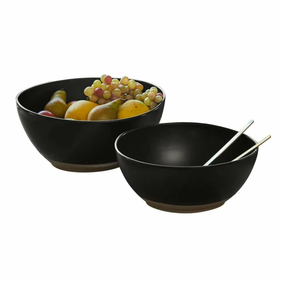 Dieses charmante Duo bringt einen Hauch Mittelmeer auf Ihre Tafel. Die schönen Schalen aus Steinzeug haben eine reizvolle Optik, welche an Handwerkskunst aus dem sonnigen Süden erinnert. Leichte Unebenheiten sind hier ganz bewusst gestaltet, um dem Set noch mehr individuelles Flair zu verleihen. Der edle, dunkle Rand ist ein hübsches Detail, so wie auch der unglasierte Boden. Sie erhalten zwei Größen im Set. Die beiden stilvollen Schalen lassen sich sehr vielseitig nutzen, etwa um Pasta oder Salat zu genießen. Oder arrangieren Sie Oliven und Nüsschen darin, servieren Sie eine Suppe oder naschen Sie frisch geschnittenes Obst daraus. Wer möchte, könnte auch dekorative Arrangements erschaffen, vielleicht mit Trockenblüten und Muscheln befüllt. Und auch zum Aufbewahren kleiner Dinge wie Haarnadeln bieten die attraktiven Schalen sich an. Freuen Sie sich auf zwei echte Multitalente.