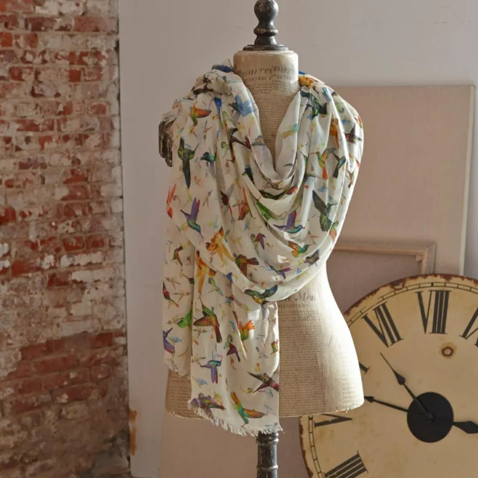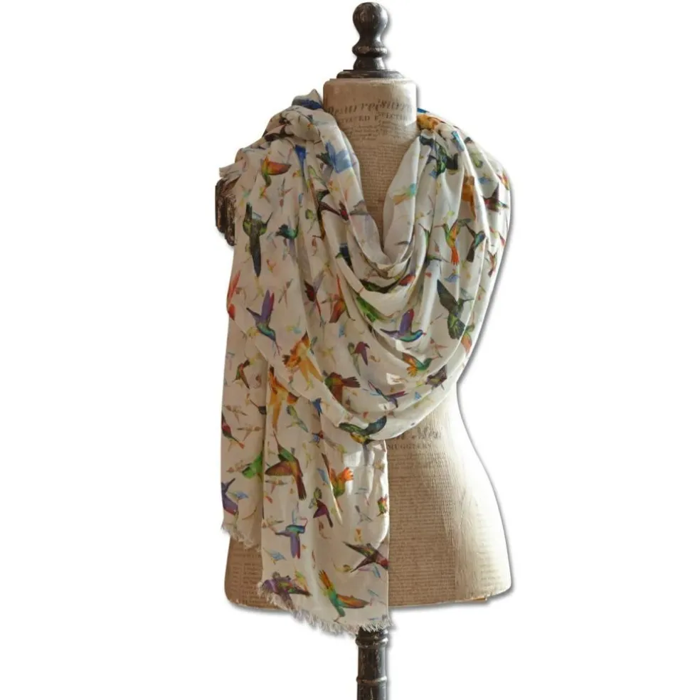 Ob als federleichte Stola zum schulterfreien Kleid oder als Sommerschal mit Gute-Laune-Garantie: Der Schal aus schmeichelnder Viskose ist über und über bedruckt mit bunten Kolibris. So punktet er als stilvoller Allrounder, der zum kleinen Schwarzen ebenso gut aussieht wie zum lässigen Jeans-Outfit.