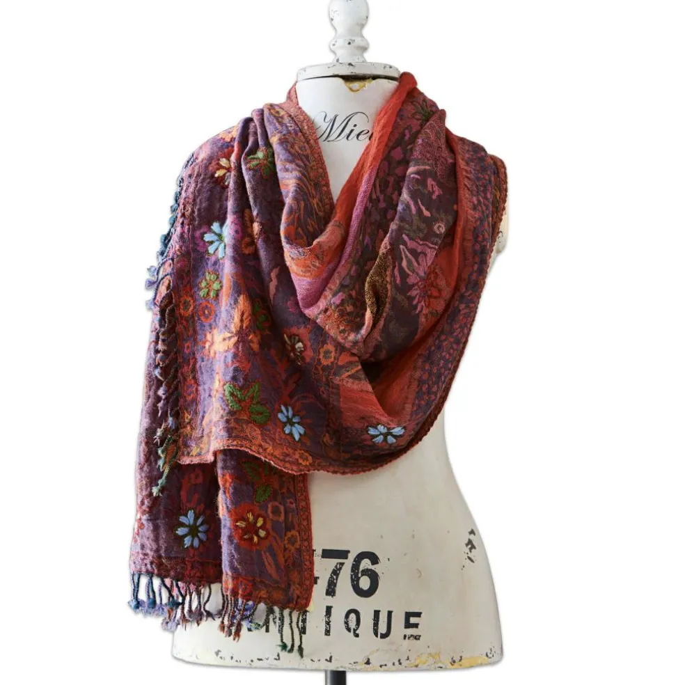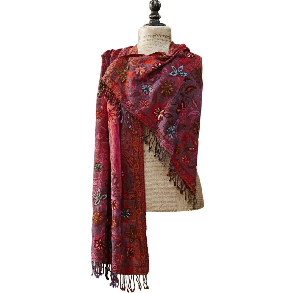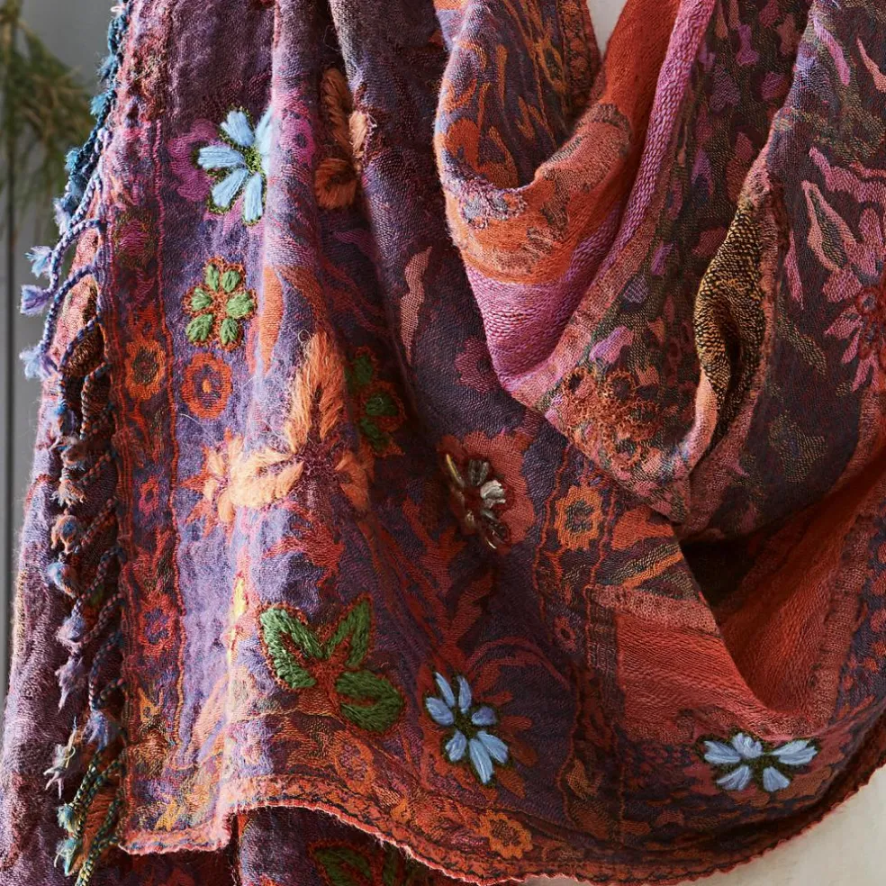 Der Schal wurde aus reiner Wolle gewebt und in Handarbeit mit einer floralen Stickerei versehen. Die zarten Fransen unterstreichen den lässig-eleganten Look, der zu jeder Jahreszeit, zu jedem Anlass und zu jedem Outfit einen farbenfrohen Akzent setzt. Und das Beste: Sogar bei Ihnen Zuhause sorgt das bunte Stück Stoff für frischen Wind. Unser Tipp: Nutzen Sie den Schal zweckentfremdet als Tischschmuck oder als Überwurf über der Sofalehne – so setzen Sie im Handumdrehen individuelle Akzente.