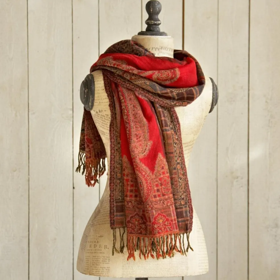Der Schal aus 100% Wolle punktet mit einem trendstarken Mix aus klassischen Paisley-Muster und angesagtem Karo. Das warm leuchtende Rot, die weiche Qualität und die bunten Fransen machen das Tuch endgültig zum Must-Have der Saison. Kombinierbar zu edlem Samt, klassischem Tweed oder Denim – zu jedem Anlass und zu jeder Jahreszeit.