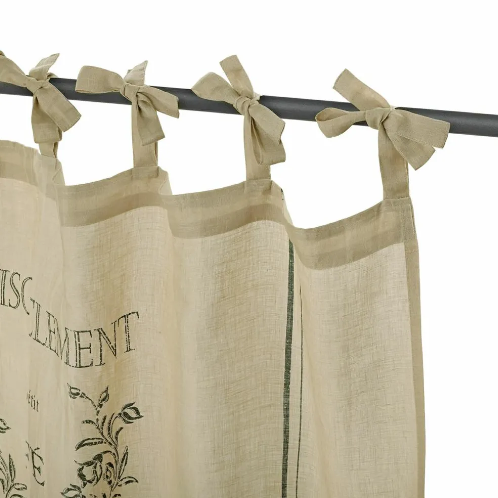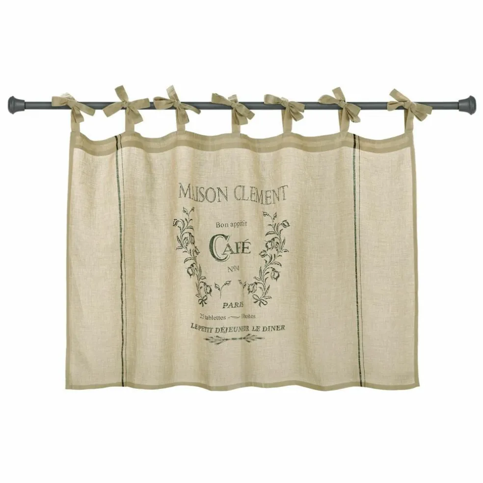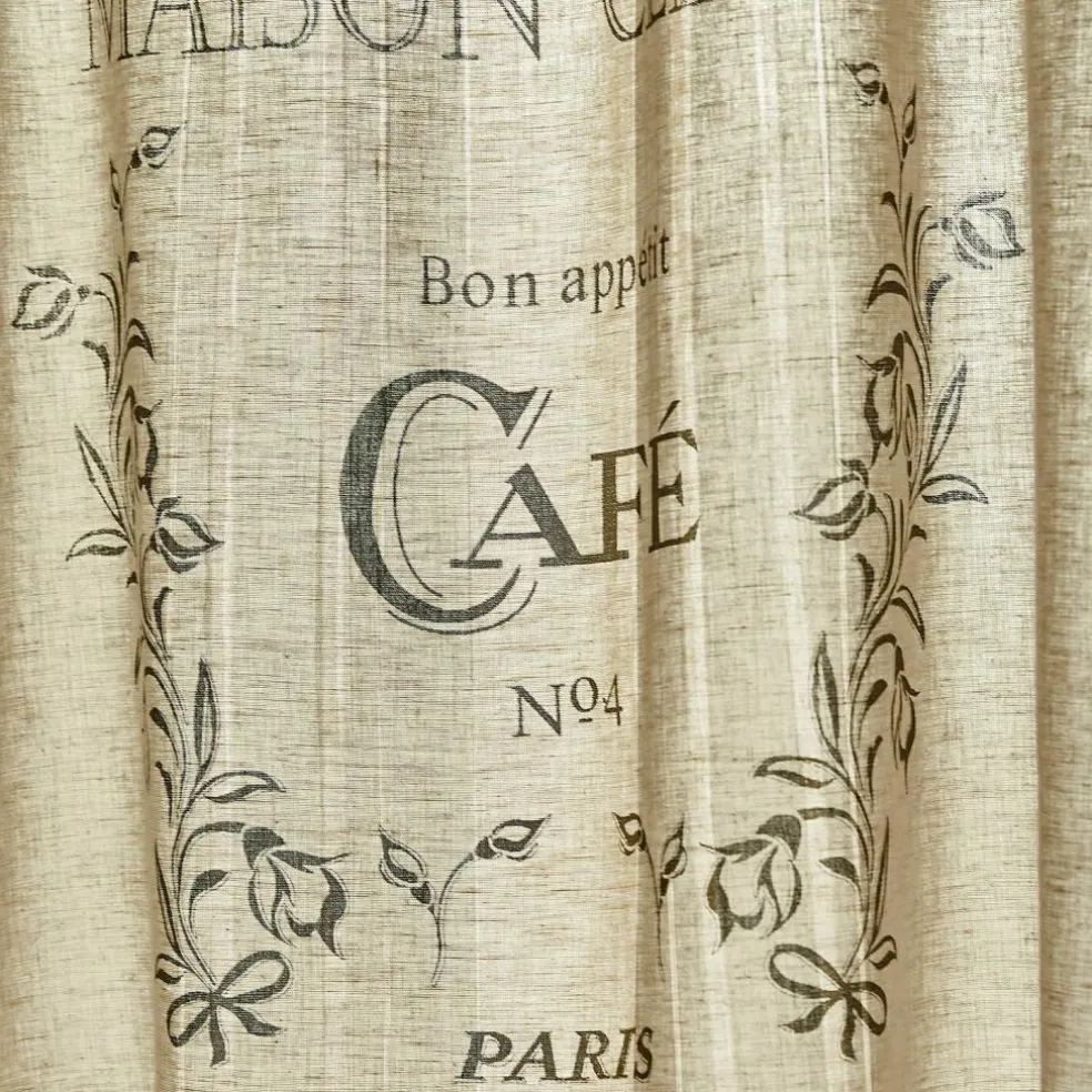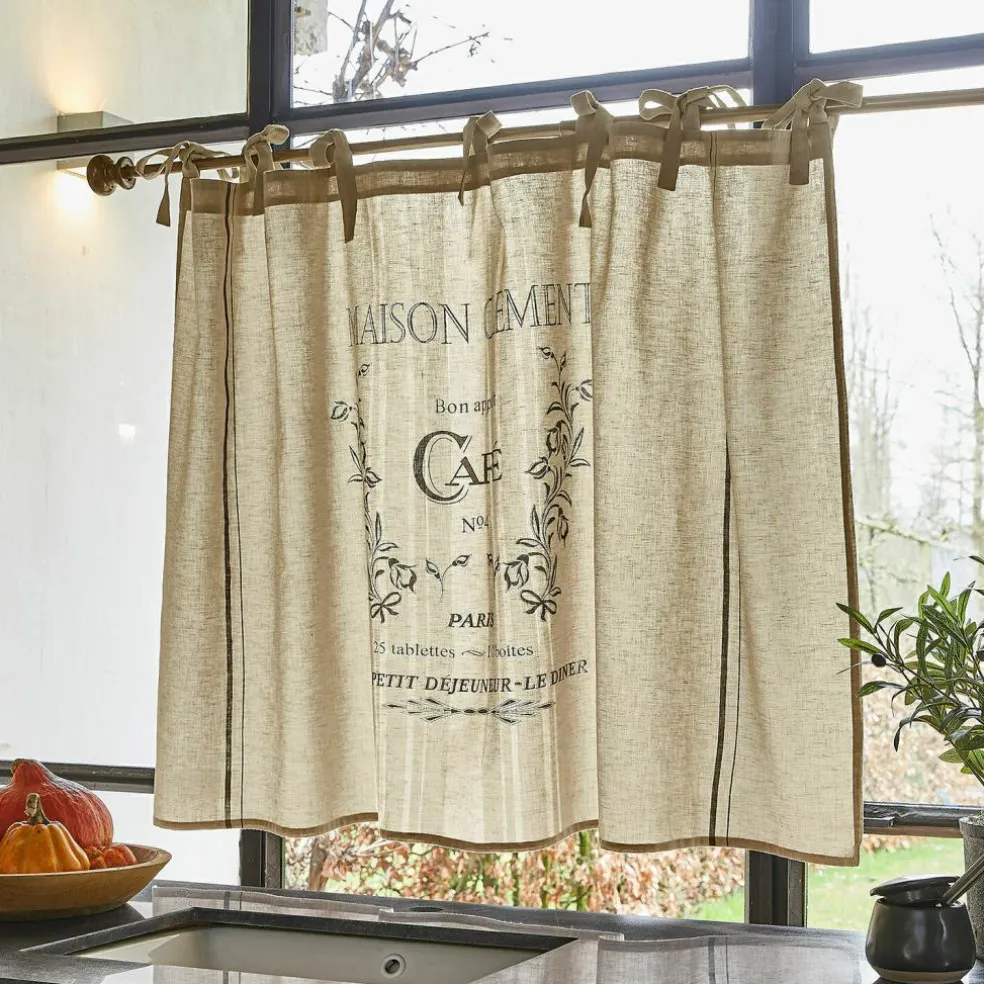 Holen Sie sich mit dieser charmanten Scheibengardine ein Stückchen Frankreich nach Hause. Sie besteht aus reinem Leinen mit einem feinen, französischen Print. Das wunderhübsch nostalgische Design bezaubert mit seinem authentisch verblassten Schriftzug, wodurch es wirklich wie aus früheren Tagen erscheint.. Diese schicke Gardine macht besonders in der Küche eine sehr gute Figur, wo sie für einen dezenten Sichtschutz wie auch für einen sehr dekorativen Effekt sorgt. Hiermit wird Ihr Heim umso schöner und gemütlicher. An den hübschen Bindebändern lässt sie sich ganz leicht befestigen, sodass Sie sich gleich daran erfreuen können.