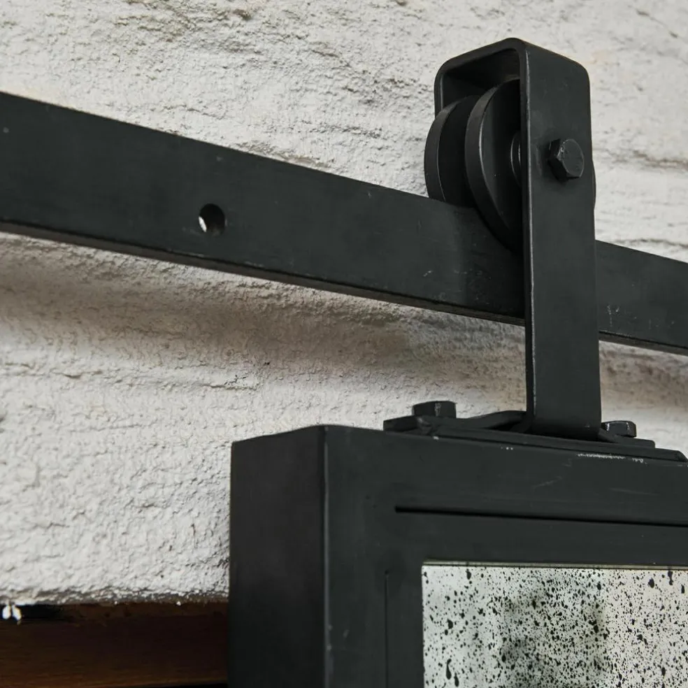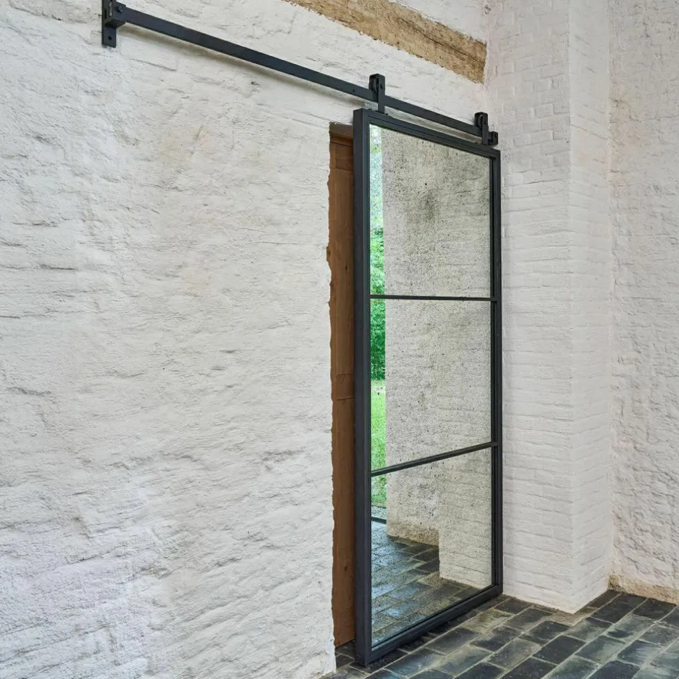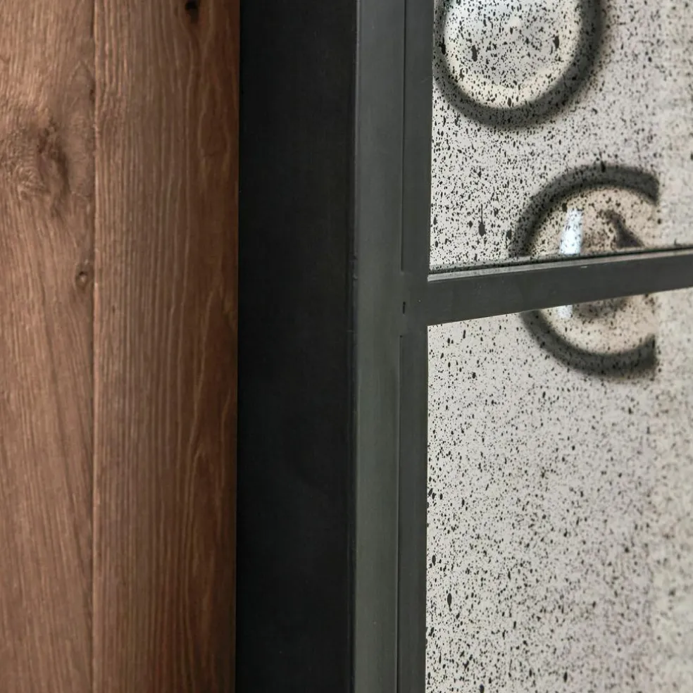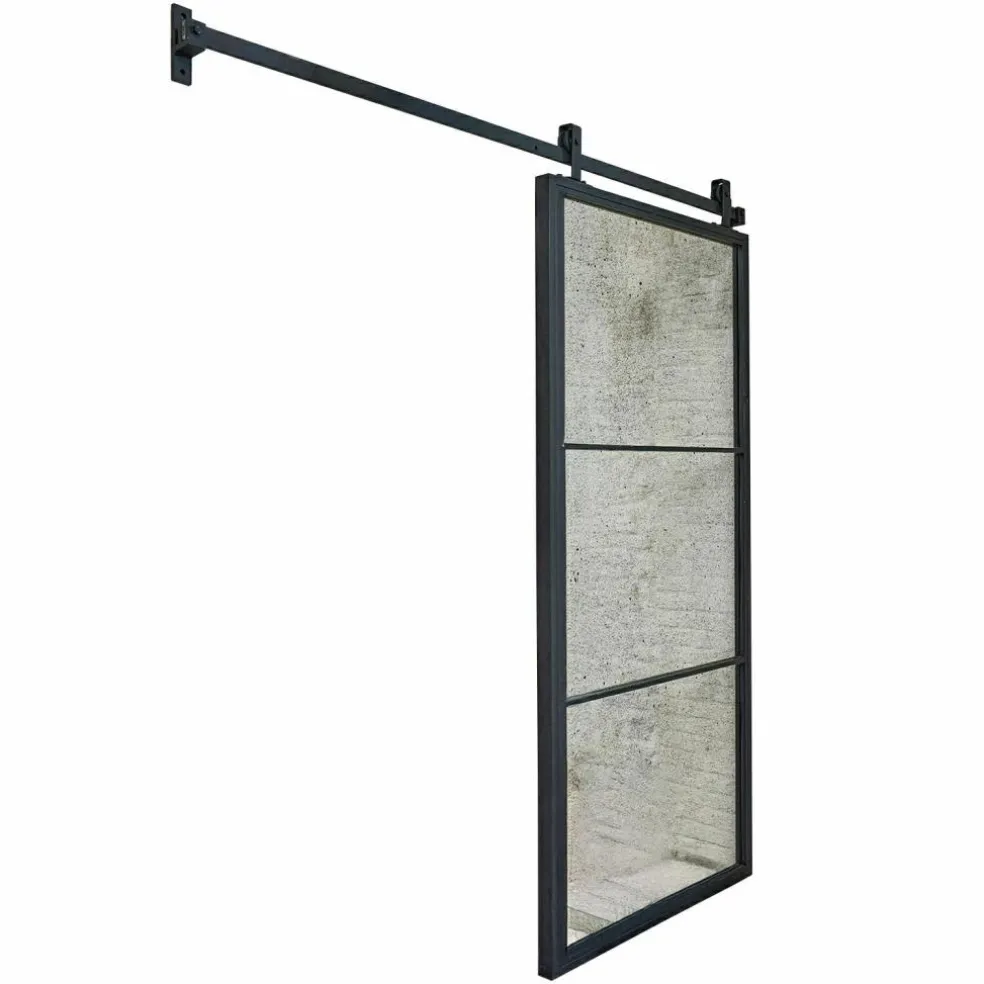 Diese Schiebetür ist mehr als ein Raumtrenner – sie ist ein echtes Statement. Beidseitig mit antik verspiegelten Flächen versehen, reflektiert sie nicht nur Licht, sondern auch Geschichte. Die charmanten Alterungsspuren des Spiegels erinnern an vergangene Zeiten und lassen eine besondere Atmosphäre entstehen. Gefasst in einen geradlinigen Eisenrahmen mit matter Oberfläche, erhält die Tür eine kraftvolle industrielle Note. Die dazugehörige Eisenlaufschiene sorgt für ein stimmiges Gesamtbild und erleichtert das Öffnen mit Leichtigkeit. Ideal für offene Wohnkonzepte, in denen Design und Funktion Hand in Hand gehen.
