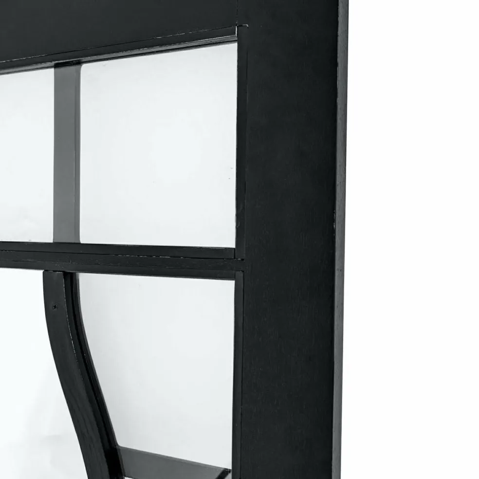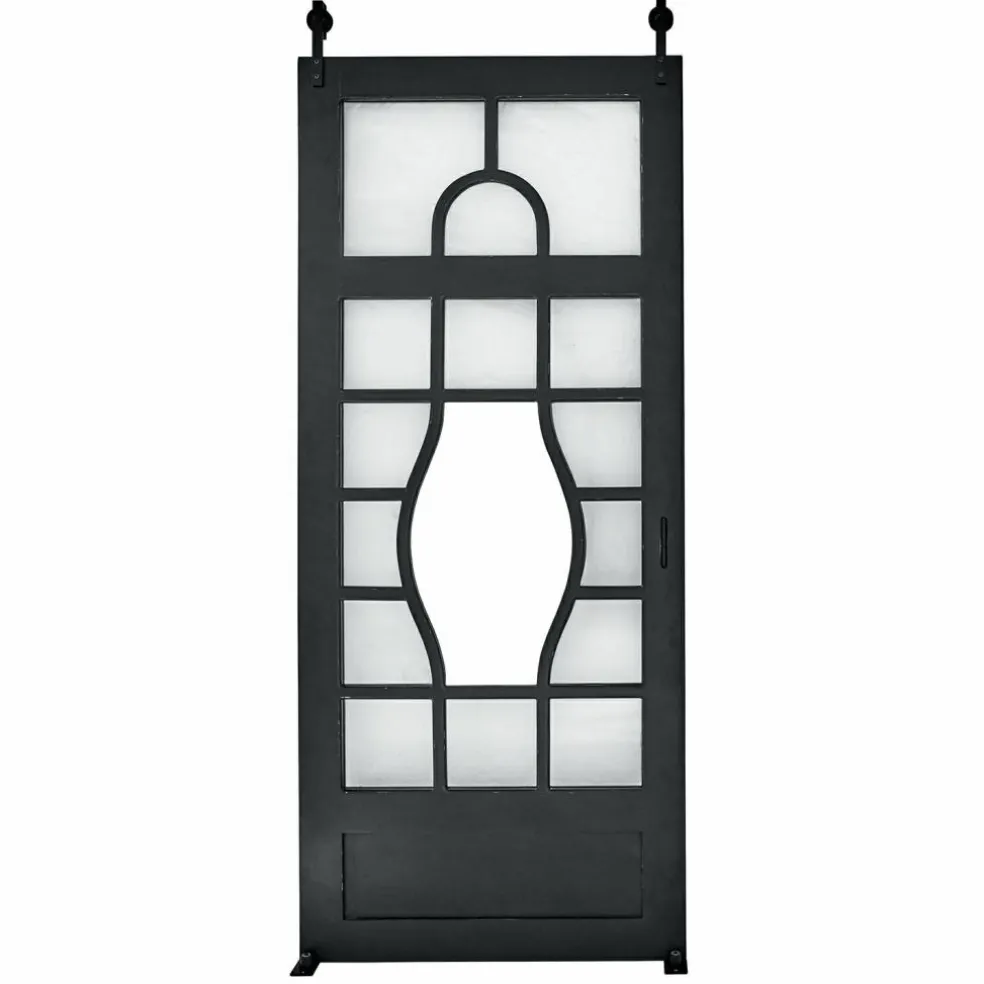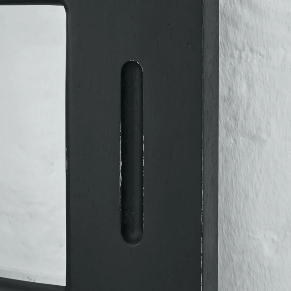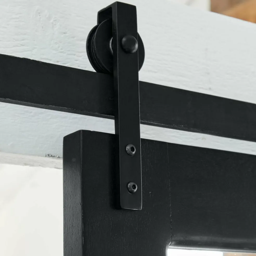 Eine Tür, die mehr ist als nur ein Raumtrenner – sie ist ein Blickfang mit Charakter. Der massive Holzrahmen in tiefem Antikschwarz hebt sich eindrucksvoll von den klaren Glaselementen ab. Der mittige Spiegel bricht das Design und reflektiert das Licht auf faszinierende Weise, wodurch der Raum optisch vergrößert wird. Die Eisenschiene sorgt für einen sanften, leisen Lauf und rundet den industriellen Charme ab. Ob als elegante Loft-Tür, stilvolle Lösung für begehbare Kleiderschränke oder als markanter Akzent in Wohnräumen – diese Schiebetür bringt Atmosphäre und Stil in jedes Zuhause.