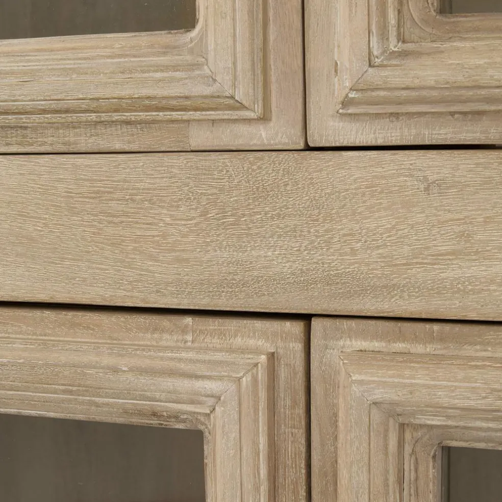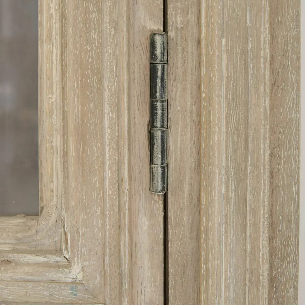 Dieser Vitrinenschrank vereint gleich mehrere Highlights in einem stilvollen Möbelstück. Besonders ins Auge fällt die obere Glastürpartie mit ihren geschwungenen Rundbögen – ein Designelement, das aktuell nicht nur im Interieur-Bereich gefeiert wird, sondern jedem Raum eine wohltuende Sanftheit verleiht. Das Mangoholz mit seiner natürlichen Maserung bringt eine lebendige Struktur in die Oberfläche, während das helle White-Washed-Finish dem Möbel eine sanfte Patina verleiht – als hätte es schon viele schöne Geschichten zu erzählen. Ob für Geschirr, Bücher oder dekorative Lieblingsstücke – durch die großzügige Innenaufteilung mit mehreren Einlegeböden eignet sich der Schrank sowohl fürs Esszimmer als auch für den Wohn- oder Eingangsbereich. Ein Stück, das Wärme ausstrahlt und gleichzeitig stilvolle Ordnung schafft.