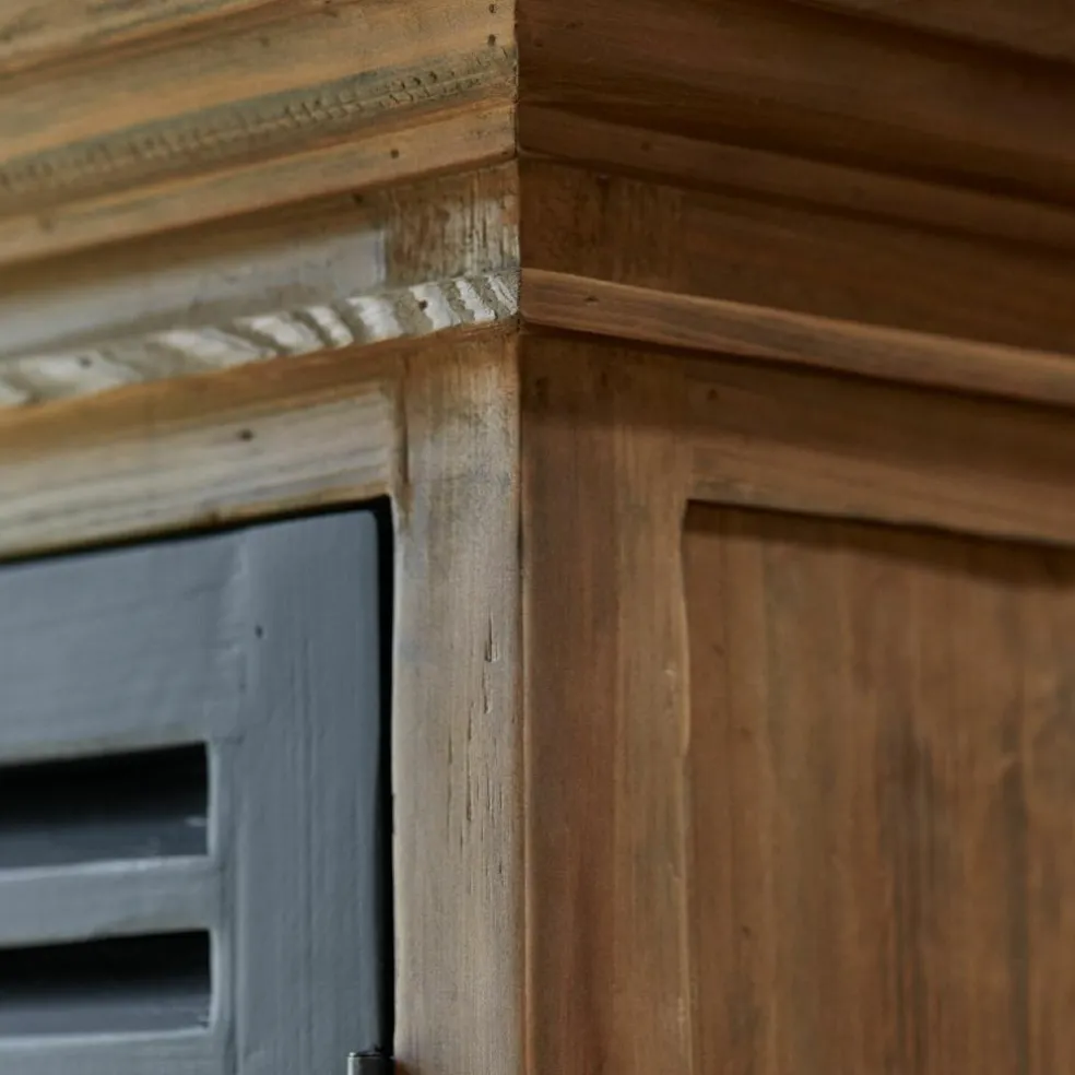 Ein wahrer Blickfang für jedes Zuhause: Dieser Schrank besticht durch sein massives Holz und die harmonische Kombination aus schwarzem Finish und natürlichem Holzton. Die drei markanten Türen sind mit Lüftungsgittern und praktischen Etikett-Einschüben ausgestattet, die an den klassischen Spint-Look erinnern, jedoch mit der warmen Haptik von Holz überraschen. Das Innere des Schranks bietet maximale Flexibilität dank herausnehmbarer Stangen und Böden, sodass Sie den Stauraum ganz nach Ihren Bedürfnissen gestalten können. Ob als Garderobenschrank im Flur oder als vielseitiger Stauraum im Wohnbereich, dieser Schrank vereint funktionales Design mit hochwertiger Handwerkskunst.