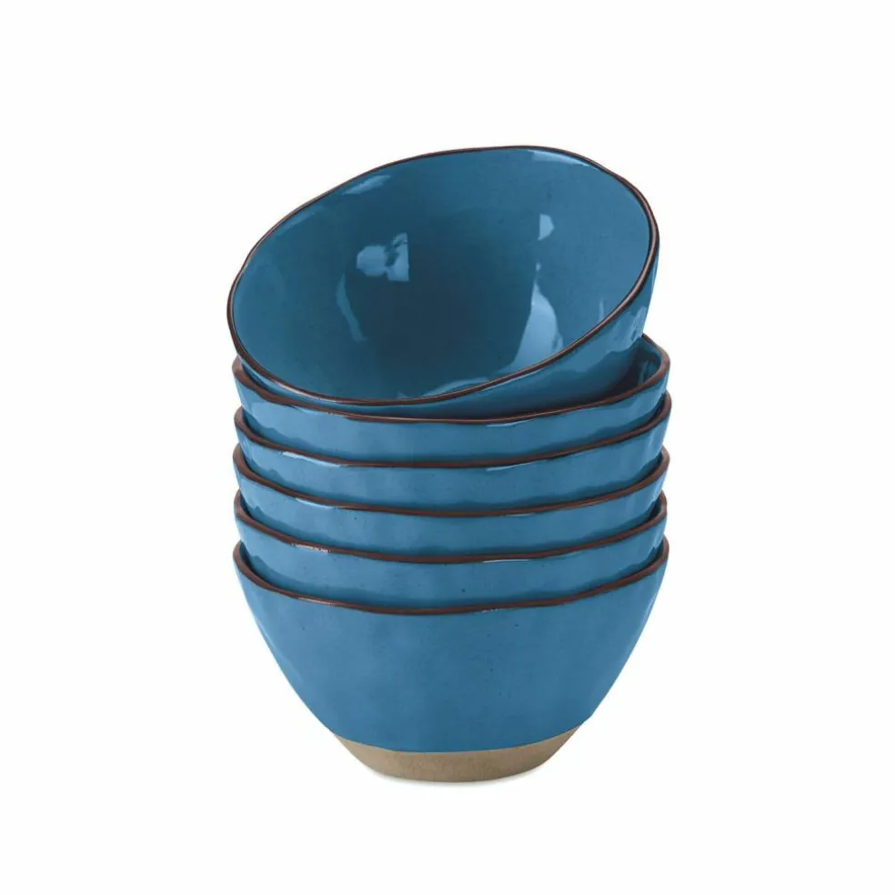 Eine Extraportion Stil bitte – dieses schicke 6er Set bezaubert mit einem individuellen Design. Es hat mediterranen Charme. Die sechs Schüsseln haben einen reizenden, handgetöpfert wirkenden Charakter. So werden kleine, bewusste Unebenheiten zum interessanten Detail. Das Set mit persönlicher Note besteht aus glänzend glasiertem Steinzeug mit einem dekorativen, dunklen Rand und einem unglasierten Boden. Die schönen Schalen lassen sich sehr vielseitig einsetzen – natürlich für feine Leckereien wie Eis, Joghurt, Früchte oder süße Desserts. Doch auch Suppen und kleine Salate schmecken hieraus gleich noch besser. So sind sie von morgens bis abends ein perfekter Begleiter für Ihren stilvoll gedeckten Tisch. Wer mag, kann sie auch mit Dekorativem befüllen. Zu vorhandenem Geschirr oder als Ergänzung zum passenden Set, hiermit beweisen Sie jederzeit guten Geschmack.