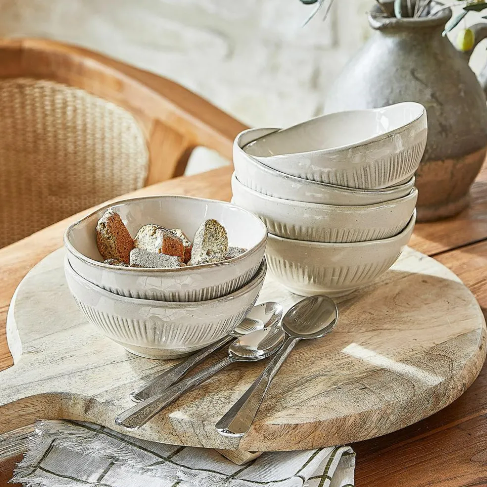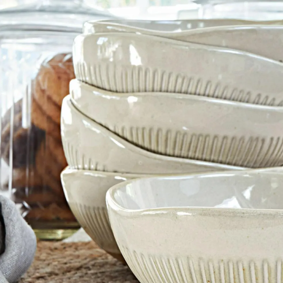 Dieses 6er Set Schüsseln aus Steinzeug bringt die Schönheit handwerklicher Kunst in Ihr Zuhause. Die bewusst unebene Form und das feine Rillen-Muster verleihen den Schüsseln eine natürliche und authentische Ausstrahlung, die das Auge erfreut. Jedes Stück dieses Sets ist einzigartig, was dem Geschirr einen besonderen Charme verleiht und Ihre Tischdekoration mit einem Hauch von Individualität und Leichtigkeit bereichert. Ob für den Alltag oder besondere Anlässe – diese Schüsseln bringen rustikale Eleganz in Ihre Küche und auf Ihren Tisch. Das langlebige Steinzeug sorgt zudem für eine angenehme Haptik und harmoniert wunderbar mit verschiedenen Einrichtungsstilen.