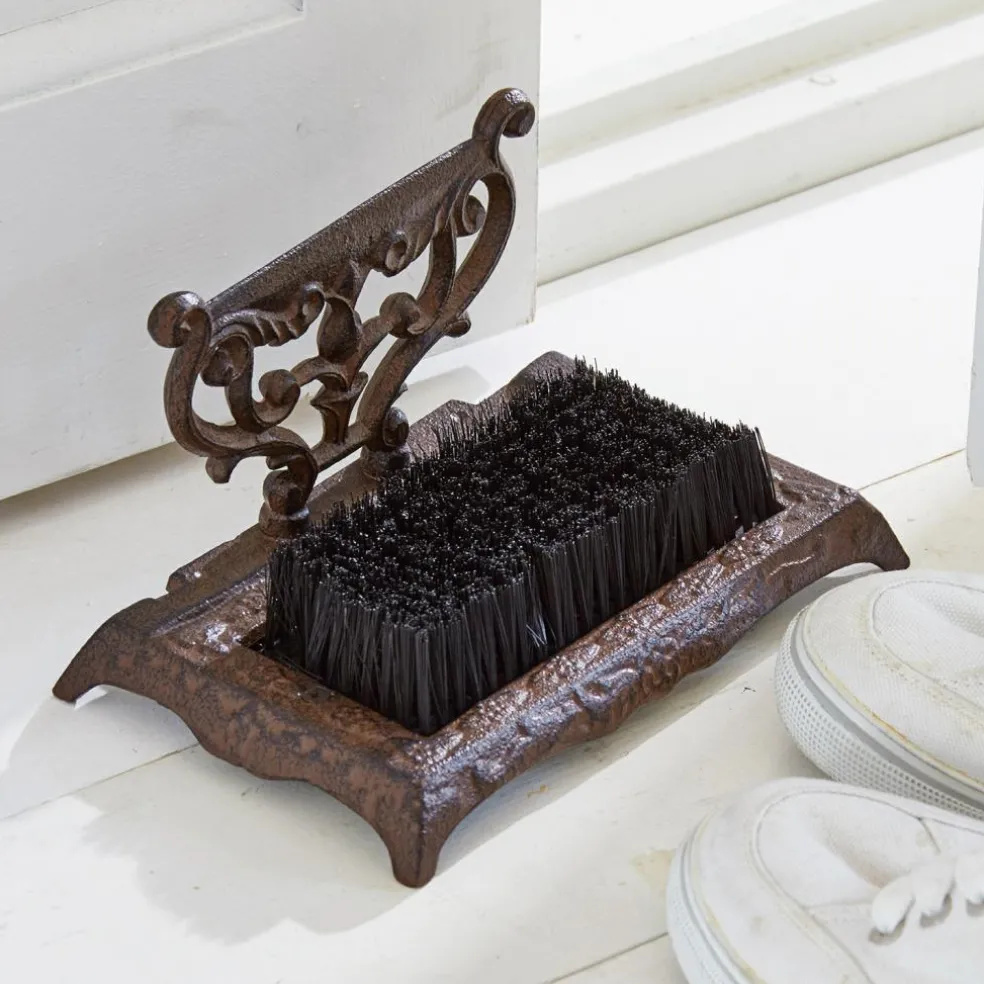 Wie ein seltener Fund von einem verwunschenen Dachboden: Dieser wunderschöne Schuhabstreifer versprüht pures Vintage-Flair. Er erscheint wirklich wie ein Stück aus alten Zeiten und wird alle Freunde des Shabby-Chic begeistern. Das authentische Design aus Gusseisen mit Antik-Finish ist ebenso dekorativ wie nützlich. Säubern Sie mit der Bürste aus Nylon Ihre Schuhe, oder lassen Sie ihn einfach als Dekoration wirken. Bei Bedarf wechseln Sie die Bürste einfach aus – eine Wechselbürste ist bereits inklusive. Ein zauberhaftes Accessoire und auch eine individuelle Geschenkidee für Freunde.