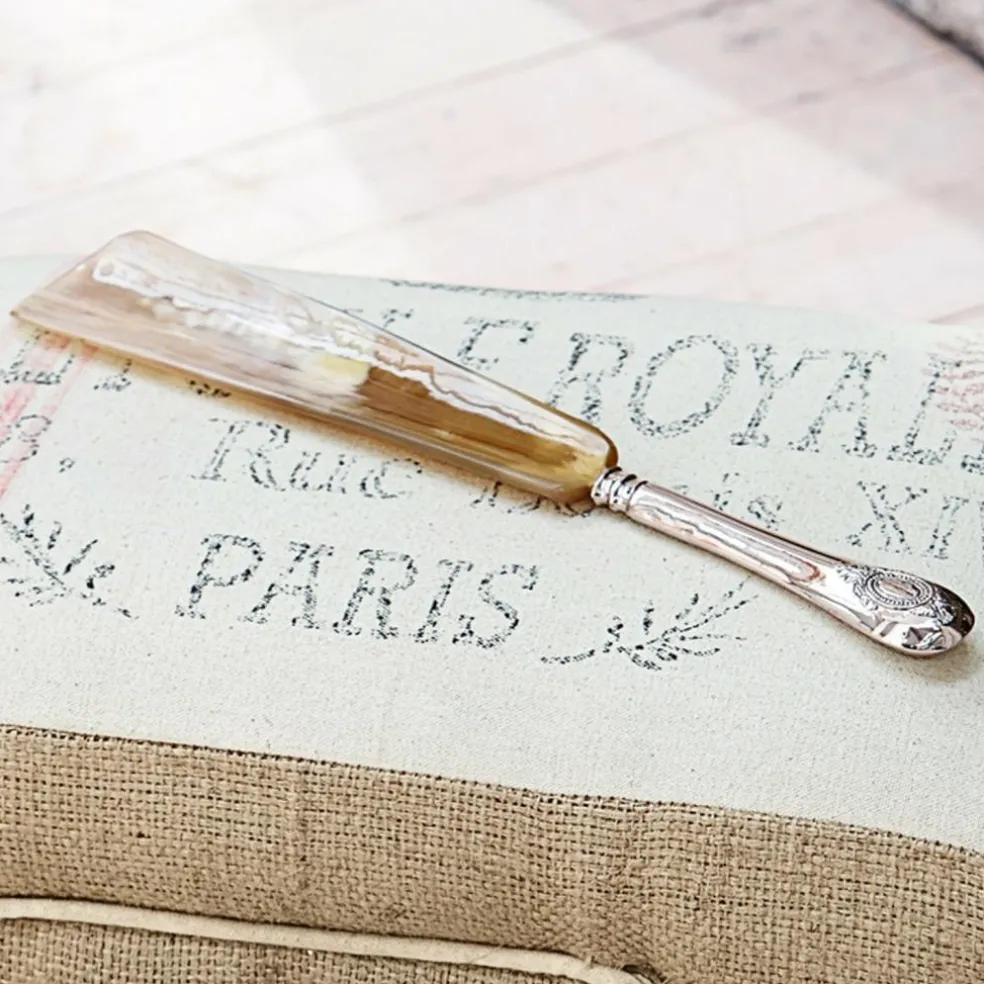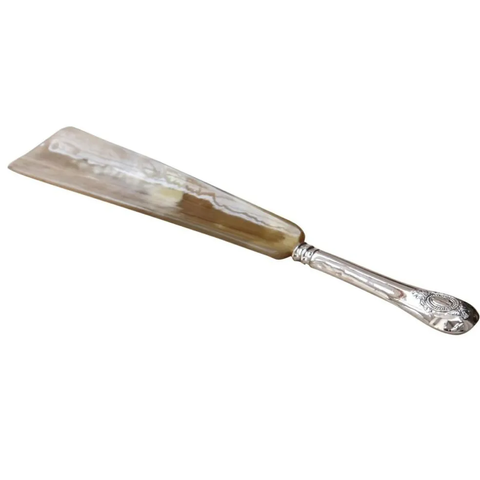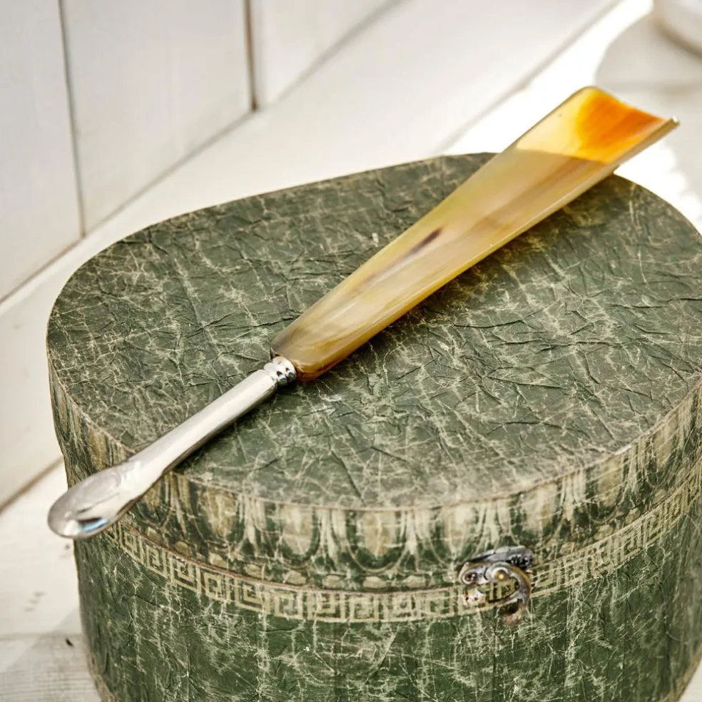 Dieser Schuhlöffel ist Dekoration und Anziehhilfe in Einem. Gefertigt aus natürlich gemasertem Horn und einem vornehm gestalteten Metallgriff der gut in der Hand liegt, macht er schon im Eingangsbereich Ihre Zuhauses auf jeden Gast so richtig Eindruck. Das Highlight: Das Maserung des Horns ist niemals dieselbe – so ist garantiert jedes Stück ein echtes Unikat. Der Antik-Look lässt den Schuhlöffel überdies wirken wie ein Erbstück oder ein Schmuckstück vom Antiquitätenhändler.