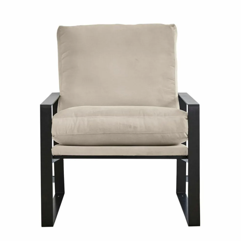 Mit seinem schlichten Design erinnert der Sessel an den trendigen Skandi-Look, der eine Atmosphäre einladender Wohnlichkeit entstehen lässt, aber auf unnötigen ‘Klimbim‘ verzichtet und lieber funktional und geradlinig auftritt. In diesem Sinne zeigt der Sessel ein minimalistisches Gestell aus stabilem, schwarzem Eisen, zu dem eine großzügige Sitzfläche kombiniert wurde. Auf dem Sitz wie am hohen Rücken lädt Sie je ein großes, komfortabel gepolstertes Kissen zum Platznehmen ein und wenn Sie der Einladung folgen, werden Sie mit luxuriösem Sitzkomfort empfangen. Lesen Sie in dem Sessel ein Buch, blättern in einer Zeitschrift, hören Musik oder sehen einen Film – und genießen Sie dabei auch die sanften Streicheleinheiten, mit denen Sie der weiche Samtbezug verwöhnt. Da der Samt aus einem hochwertigen Polyestergewebe besteht, ist er außerdem strapazierfähig und schmutzabweisend.