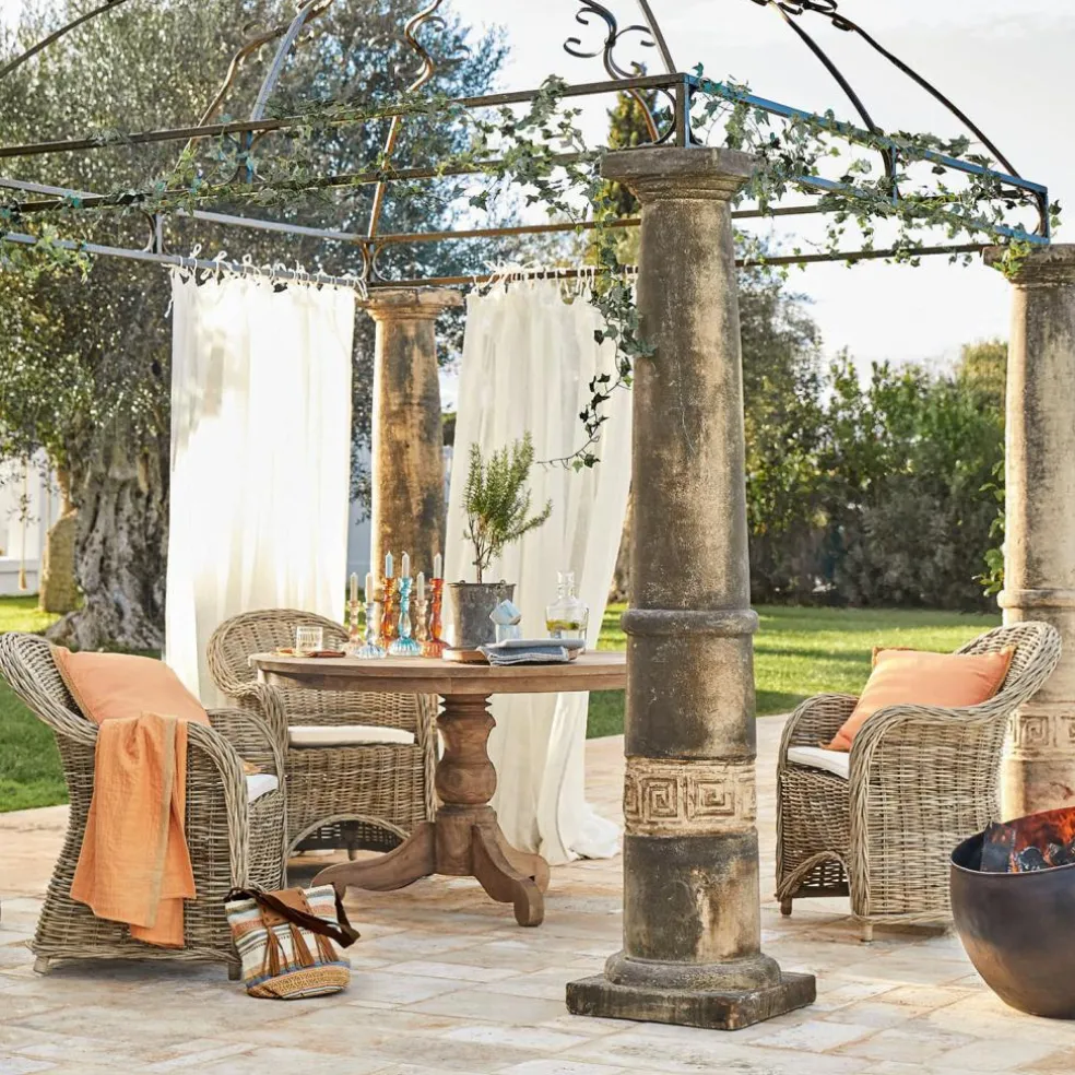 Wer liebt es nicht – das entspannte Lebensgefühl des mediterranen Raumes! Und wo lässt sich das besser genießen als in einem Sessel wie diesem hier? Zumindest während der vielen Sommertage und Abende, die man nicht unter südlicher Sonne verbringen kann. Da aber auch die Sommer nördlich der Alpen mediterranen Charakter annehmen, wird das Urlaubsfeeling auf Ihrer Terrasse perfekt werden. Ganz gleich, ob Sie während der Gartenarbeit mal solo eine kurze Pause in diesem Sessel einlegen oder sich die Freunde um den Tisch versammeln, weil Sie zum traditionellen Barbecue eingeladen haben – alle werden das außergewöhnliche Sitzerlebnis in diesem Sessel zu schätzen wissen. Das hohe Rückenteil lädt zum entspannten Anlehnen ein, während die Arme auf den geschwungenen Armlehnen ruhen – so lässt es sich gemütlich plaudern, bis plötzlich die Sterne am Himmel leuchten. Doch auch, wenn Sie mal keine Zeit zum Platz nehmen haben, wird das elegante Design eine Freude fürs Auge sein. Das dekorative Geflecht sieht aus wie echtes Rattan, ist aber ein modernes Kunststoffgeflecht mit hervorragenden Outdoor-Eigenschaften. Die elastischen Kunststofffasern, die wie Naturrattan in aufwändiger Handarbeit geflochten werden, sind absolut nässe- und wetterbeständig, so dass Sie den Sessel unbesorgt den ganzen Sommer draußen im Freien stehen lassen können.