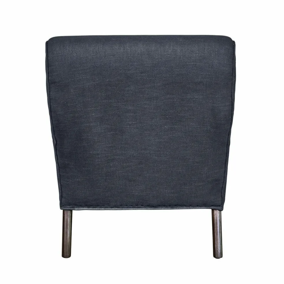 Die besondere Ausstrahlung dieses Sessels liegt in seiner Kombination aus prägnanter Formensprache und textiler Raffinesse. Der strukturierte Stoffbezug in tiefem Blau bringt eine feine Körnung mit, welche die Chesterfield-Knöpfung besonders wirkungsvoll in Szene setzt. Die Rückenlehne verläuft geschwungen und endet in einem gerollten Abschluss, der an historische Möbelklassiker erinnert. Arm- und Sitzflächen sind weich gepolstert, die Rückenrolle unterstützt komfortables Zurücklehnen. Zwei gedrechselte Vorderbeine mit Rollen verleihen dem Sessel eine subtile Mobilität – und eine charmante Note von Salonstil. Ein Solitär, der Behaglichkeit und Eleganz mit souveräner Haltung verbindet.