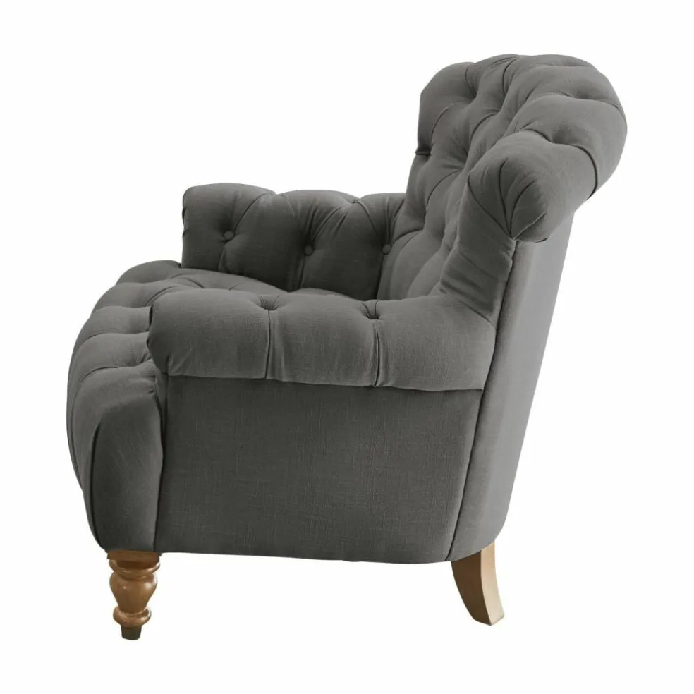 Der Sessel im Chesterfield-Stil hat es: das Potenzial zum Lieblingsplatz! Bezogen mit einem weichen, hochwertigen Leinenstoff, besticht der bequeme Clubsessel mit der klassischen Knopf-Steppung und einem stabilen Gestell aus massivem Kiefernholz. Die vorderen Beine sind sanft gedrechselt und handbearbeitet. Und auch das sieht man dem Sessel bereits an: Der Sitzkomfort ist hoch und eine feste, hochwertige Schaumstoffpolsterung sorgt dafür, dass das auch so bleibt.