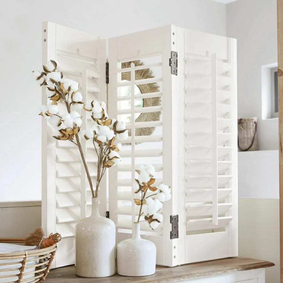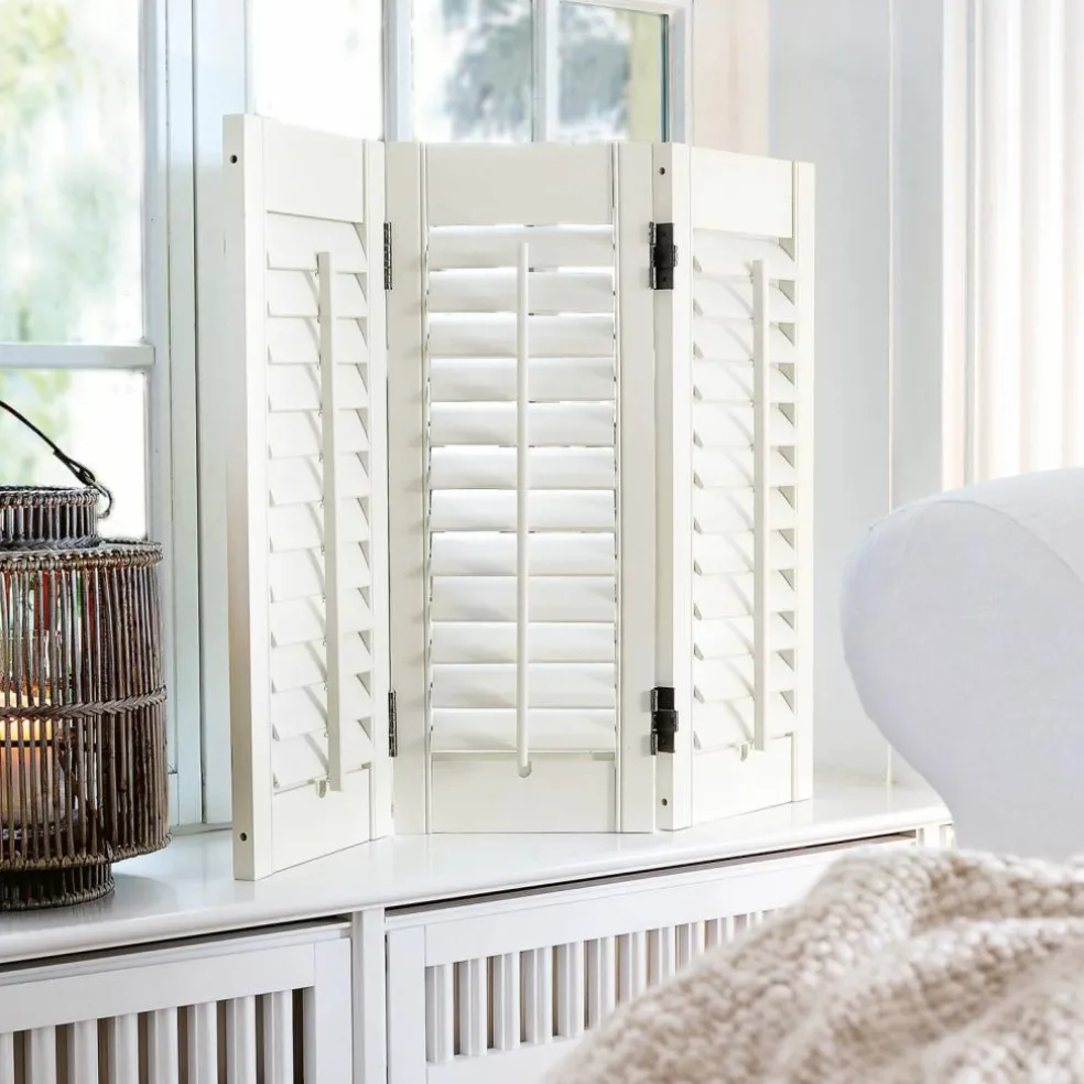 Ähnlich den klassischen Fensterläden funktioniert dieser dreiteilige Shutter. Im Fenster aufgestellt sperrt der Mini-Paravent blendendes Sonnenlicht, sommerliche Hitze oder die neugierigen Blicke der Nachbarn stilvoll aus. Die einzelnen Lamellen lassen sich aufgrund der raffinierten Konstruktion je nach Wunsch verstellen. Das hochwertige Holz ist mit einem wunderschönen, leichten Finish versehen und lässt sich daher vielseitig kombinieren – ob zu Möbeln im Shabby-Chic, einer modernen Einrichtung oder zum klassischen Landhaus-Stil.