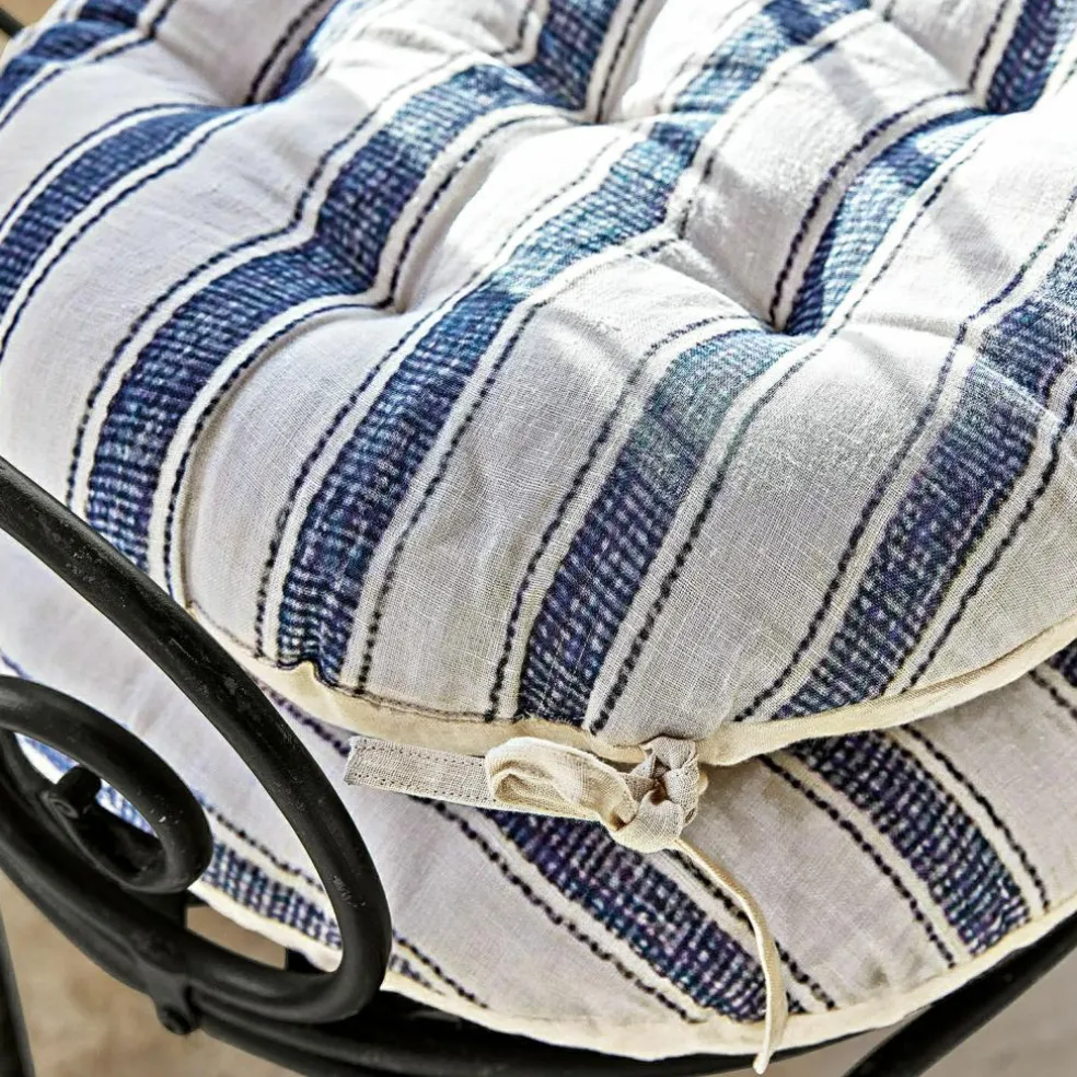 Fehlt Ihrem Essbereich noch das gewisse Etwas? Dieses gepolsterte Sitzkissen-Duo wird Ihre Stühle in edle Eye-Catcher verwandeln. Diese runden Kissen sind nicht nur außergewöhnlich stilvoll, sondern bieten auch besten Sitzkomfort. Mit den Bindebändern können Sie die Kissen sicher an Ihren Stühlen befestigen und verhindern, dass sie verrutschen. Besonders schön: Das schöne Streifenmuster der Kissen, das Ihrem Zuhause eine besondere Note verleiht. Nicht zu vergessen: Der Bezug aus reinem Leinen gibt diesen Kissen nicht nur einen eleganten Look, sondern auch eine nachhaltige Qualität.