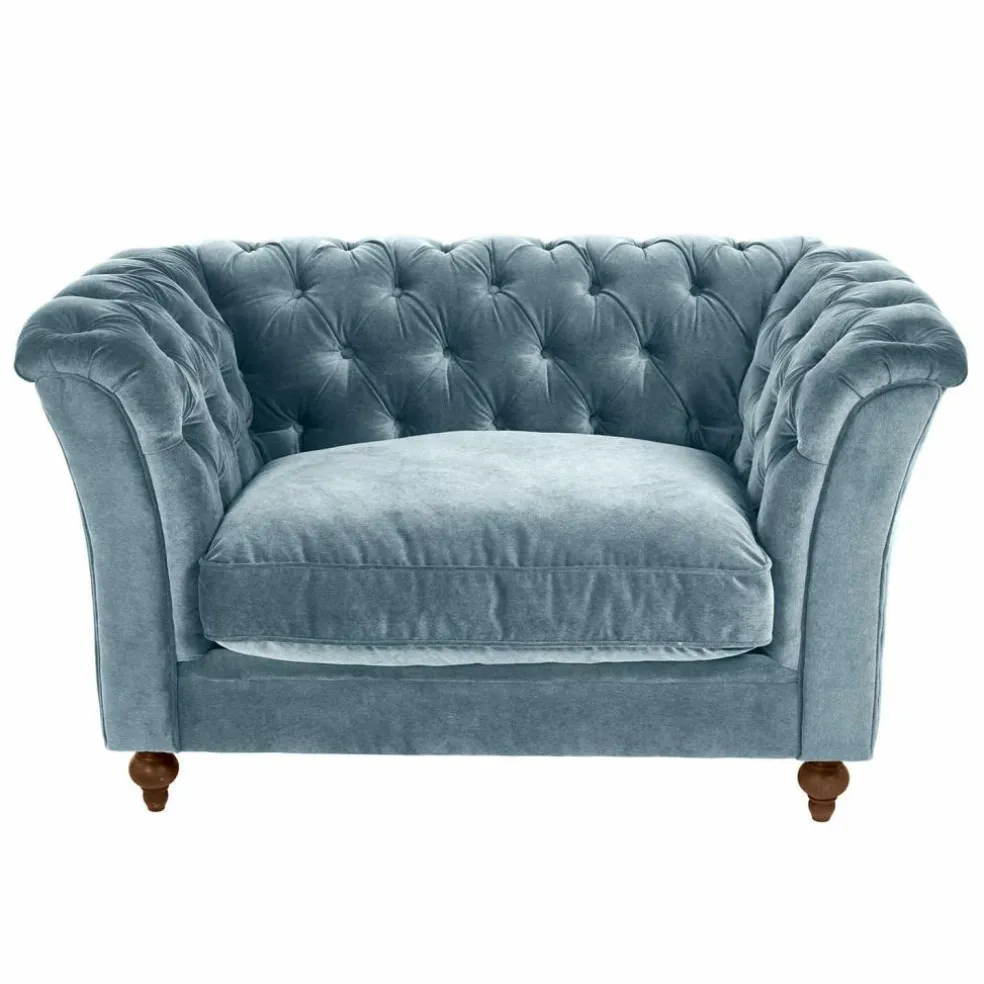 Ein hochwertiges Polstermöbel mit geknüpftem Rautenmuster, das für den Chesterfield-Stil charakteristisch ist. Der widerstandsfähige Bezug fühlt sich wundervoll an, die Polsterung ist weich und formstabil, das Sitzpolster abnehmbar. Höchster Sitzkomfort, alleine oder zu zweit, ist bei dieser Couch also garantiert. Das ikonische Design, mit seinen hübschen Kurven und Rundungen muss man einfach lieben. Die kunstvoll gedrehten Eichenholzfüße unterstreichen diesen hohen Anspruch.