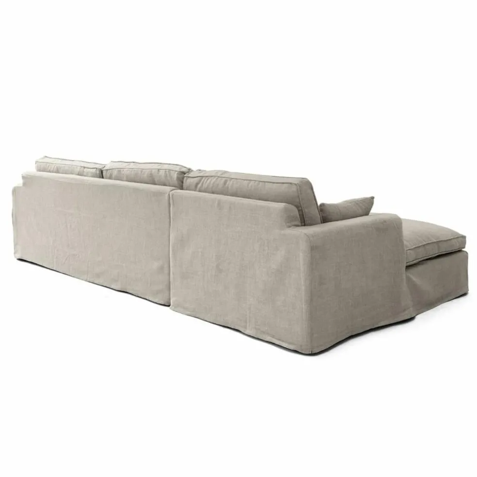 Wieso Ausgehen? Bleiben Sie einfach daheim. Mit diesem Sofa verwandeln Sie Ihr Wohnzimmer in einen absoluten Hot-Spot. Die große Couch mit eingebauter Récamière besteht aus einem stabilen Massivholzgestell und einer hochwertigen Schaumstoffpolsterung – genug Platz zum Ausstrecken inklusive. Darüber hinaus punktet das Sitzmöbel mit einem robusten Bezugsstoff, einer exzellenten Verarbeitung und acht zusätzlichen Kissen mit aufwendig gearbeiteten Kedernähten.