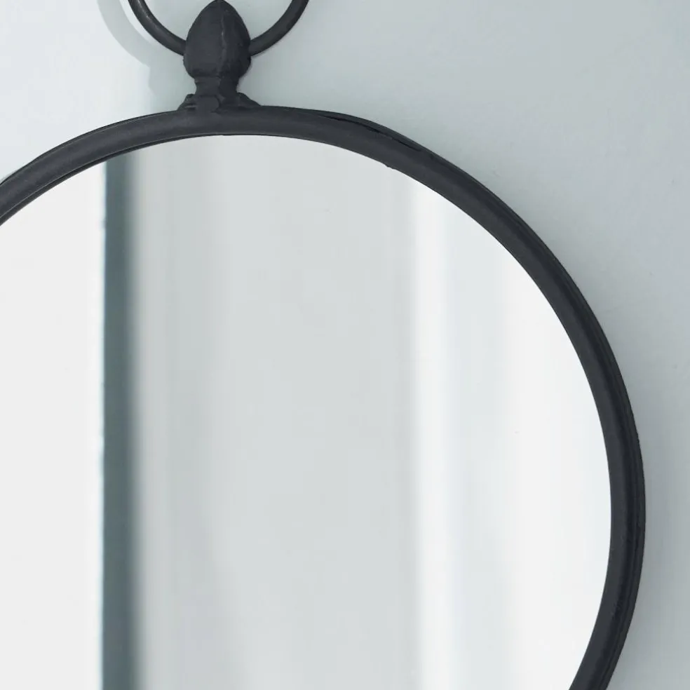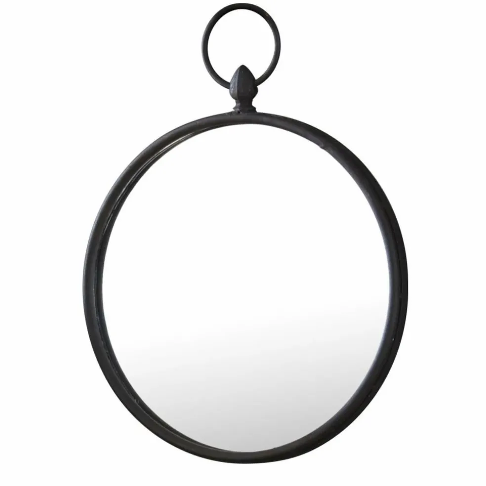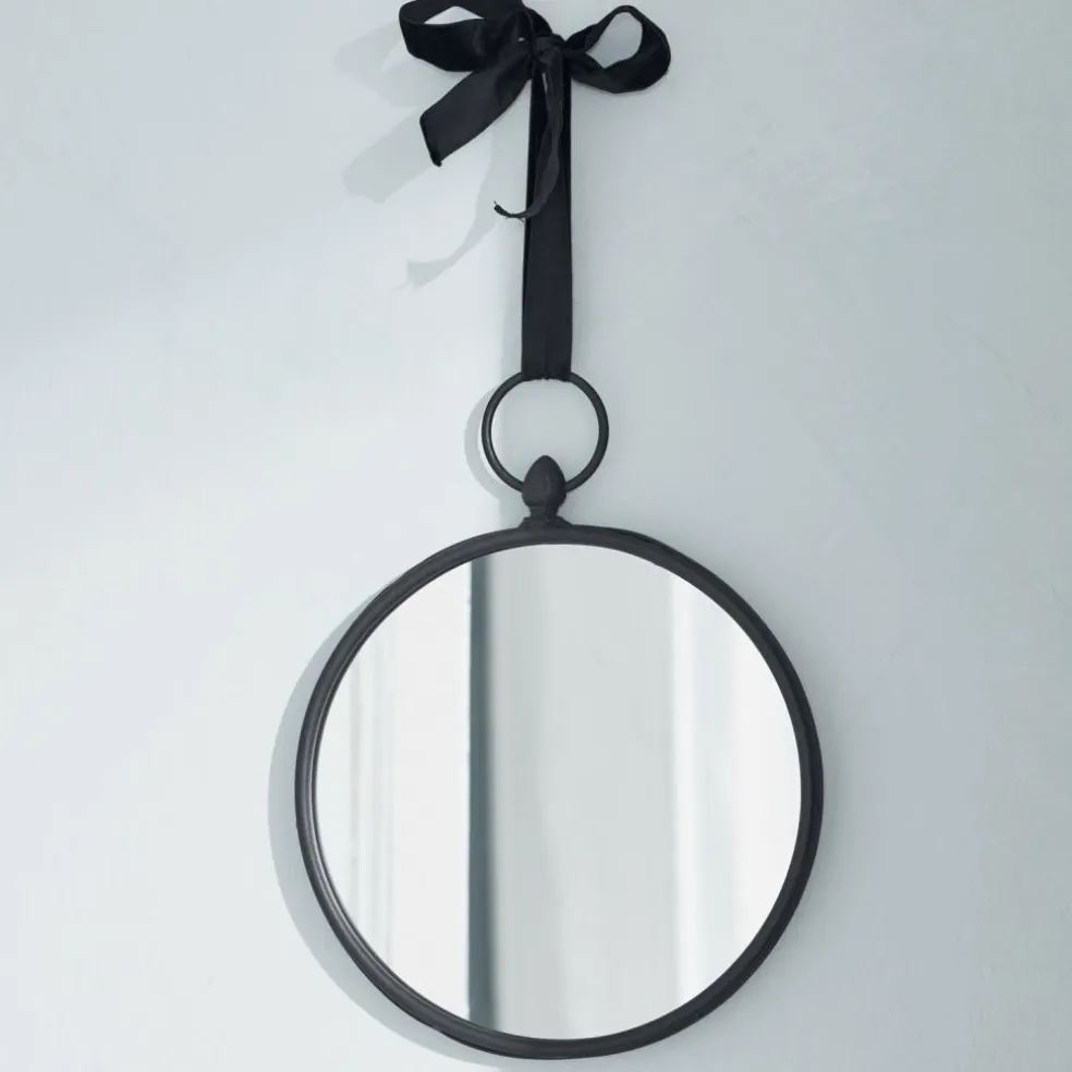 Ein kleiner Wandspiegel, der ganz romantisch mit einer Satinschleife an die Wand gehängt wird. Schlicht der Eisenrahmen mit großer Aufhängeöse. Unser Tipp: Sehr dekorativ als Wandschmuck, wenn Sie mehrere dieser Spiegel nebeneinander oder übereinander hängen.