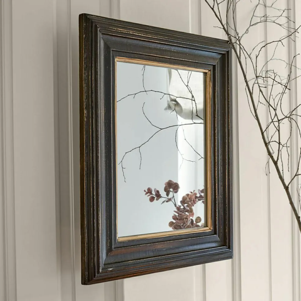Lassen Sie sich von der zeitlosen Eleganz dieses rechteckigen Spiegels verzaubern. Der breite Holzrahmen, veredelt mit einem schwarzen Antik-Finish und goldfarbenen Akzenten, ist nicht nur robust, sondern auch äußerst dekorativ. Er verleiht Ihrem Raum eine edle und stilvolle Atmosphäre. Dank der vielseitigen Aufhängungsmöglichkeiten können Sie den Spiegel sowohl hochkant als auch quer anbringen, um ihn perfekt in Ihre Einrichtung zu integrieren. Dieser Spiegel ist mehr als nur ein praktisches Accessoire – er ist ein kunstvolles Element, das jeden Raum bereichert und ihm eine besondere Note verleiht.