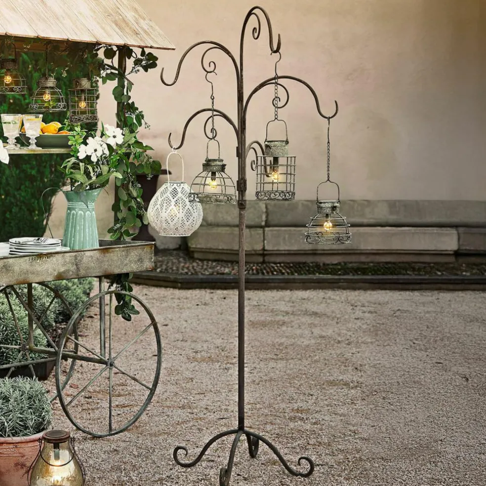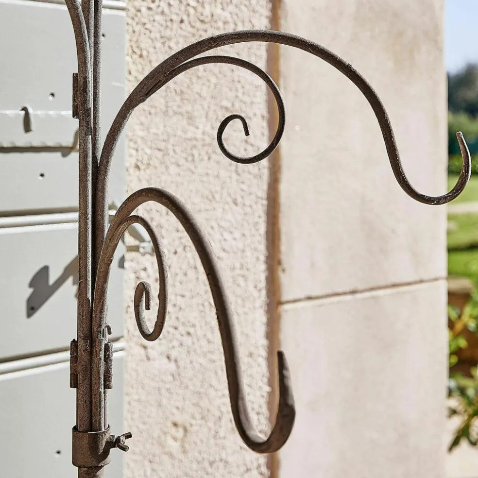 Mit seiner kunstvollen Form und dem nostalgischen Charakter ist dieser Ständer ein wahres Schmuckstück für Ihr Zuhause. Die filigranen, geschwungenen Haken bieten Platz für Laternen, Gartenwerkzeuge oder Kleidung und machen ihn zu einem vielseitigen Accessoire, das sowohl drinnen als auch draußen eingesetzt werden kann. Das Antik-Finish auf dem stabilen Metall verleiht ihm eine rustikale Note, die an romantische Gärten und liebevoll eingerichtete Landhäuser erinnert. Ein flexibler und dekorativer Helfer, der Ihrem Zuhause einen Hauch von Vintage-Charme verleiht und gleichzeitig praktische Ablageflächen schafft.