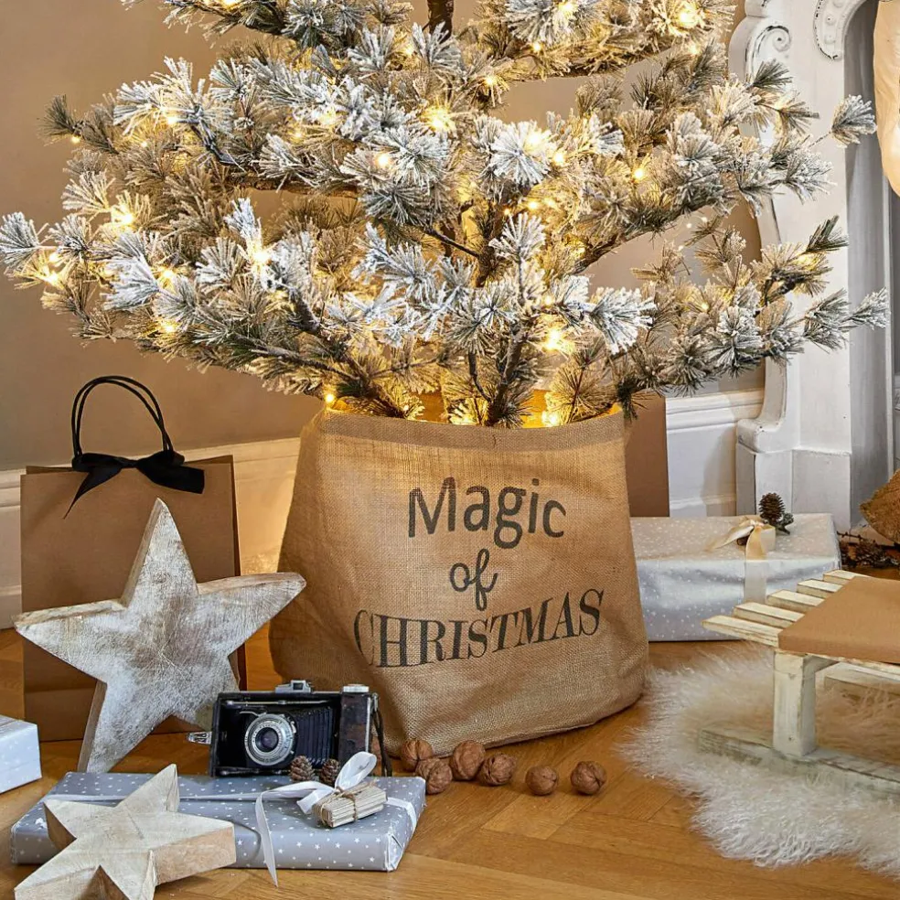 Vorbei sind die Zeiten als Körbe ausschließlich praktischen Zwecken dienten wie beispielsweise zum Aufbewahren und Transportieren ausrangierter Utensilien. Jetzt haben sie als dekorative Wohnakzente ein neues Image bekommen und begeistern in vielen Designs und Materialien. Dazu gehört auch dieser stilvolle Stoffkorb aus grob strukturiertem Jutegewebe. Das weiche Naturmaterial verleiht eine wunderbar natürliche Anmutung, ist äußerst robust im Gebrauch und kann ganz nach Wunsch effektvoll drapiert werden. Der auffällige Letterprint Magic of Christmas wird zum Blickfang und bekundet die Vorfreude auf das schönste Fest des Jahres. Durch die Innenbeschichtung wird der Stoffkorb nicht nur wasserresistent und formstabiler, sondern kann auch ganz einfach gesäubert werden. Was liegt also näher, als diesen Korb für stimmungsvolle Weihnachtsideen mit viel frischem Grün in Szene zu setzen – mal mit Tannenzweigen bestückt für den Eingangsbereich, mal als schmückendes »Beinkleid« für den Tannenbaum. Nach den Festtagen lässt sich die Beuteltasche klein zusammenfalten und platzsparend verstauen.