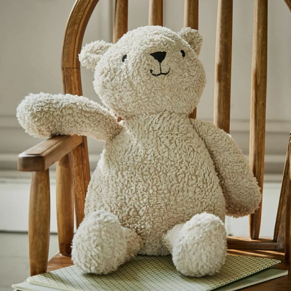 Mit seiner weichen, gestrickten Struktur erinnert dieses Stofftier an Omas liebevoll gefertigte Kuscheltiere – schlicht im Design, aber voller Charakter. Die naturgetönte Farbe wirkt beruhigend, die abgerundete Form liegt angenehm in kleinen Armen. Ein kleiner Bär mit großem Herzen, der einfach nur da ist. Ob als stiller Einschlafhelfer, Begleiter auf Reisen oder Trostspender an grauen Tagen – dieser kuschelige Kamerad ist immer zur Stelle. Und wenn er doch einmal in eine Pfütze fällt: Ab in die Waschmaschine – schon ist er wieder bereit für das nächste Abenteuer.