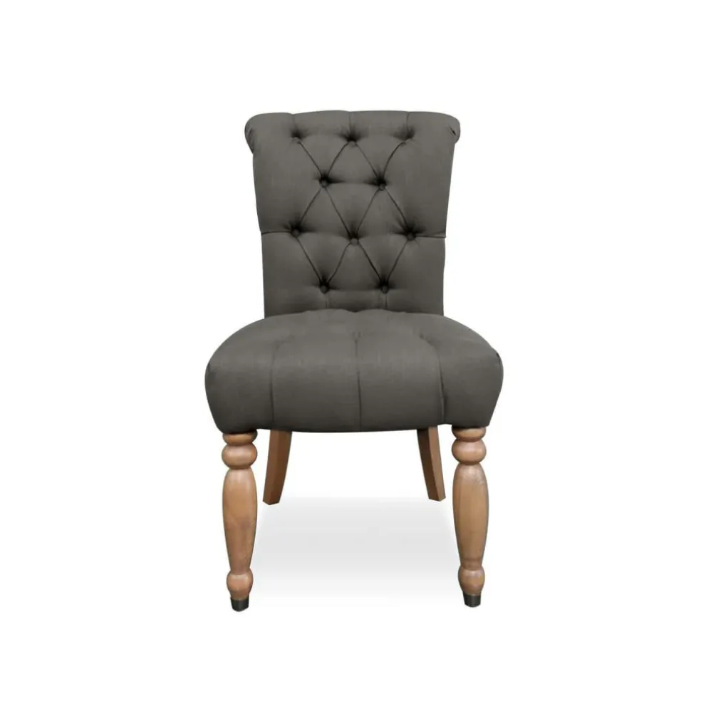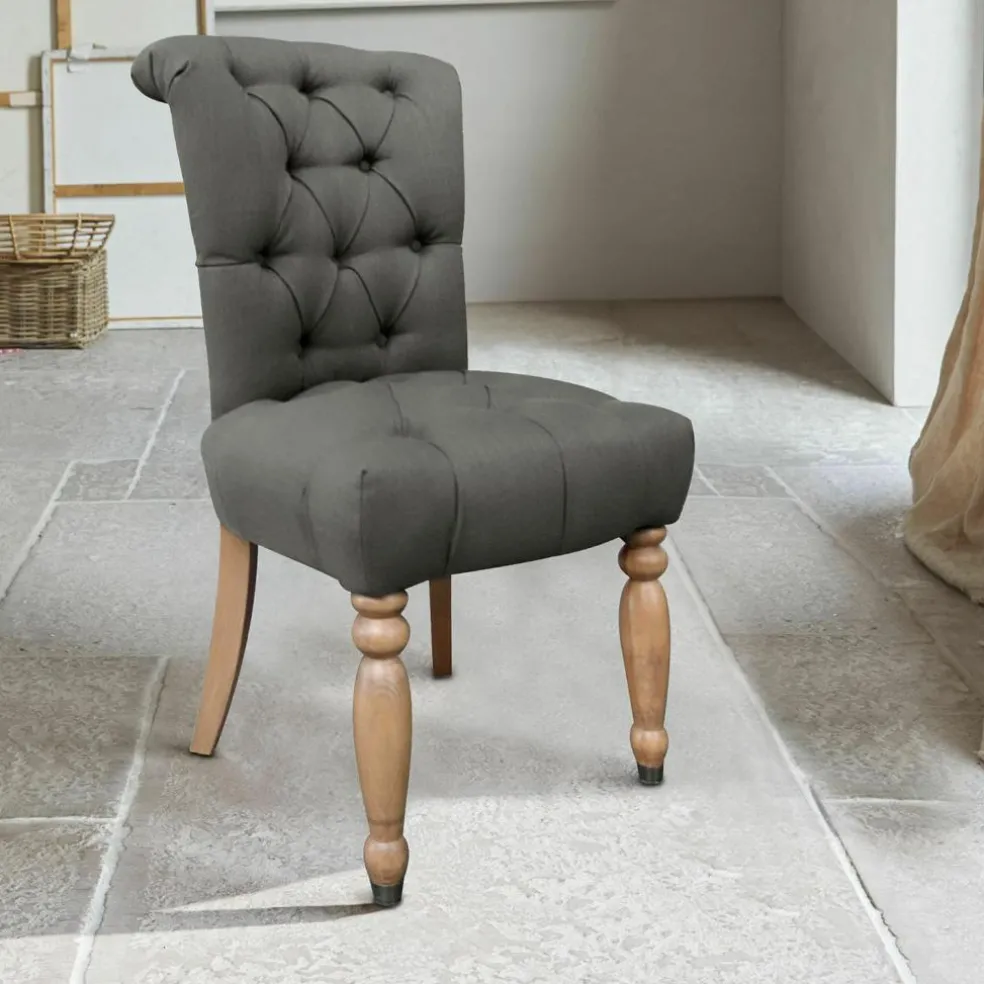 Very british: Worauf stilbewusste Inselbewohner schon lange setzen, hat auch in Ihrem Zuhause einen Platz verdient, schließlich treffen bei diesem klassischen Polsterstuhl ausgesuchte Materialien auf höchsten Sitzkomfort. Die kapitonierte Sitzfläche bietet dank der Polsterung aus festem Schaumstoff und hochwertigen Kunstfasern langlebiges Sitzvergnügen. Die sanft abgerundete Form wird durch den hellen Bezug aus strapazierfähigem Leinen-Viskose-Gemisch elegant hervorgehoben – auch die aufwendig gearbeiteten Füße aus Kiefernholz kommen so besonders gut zur Geltung. Ob als Solist oder Teil einer eleganten Tafelrunde: Dieser Stuhl bietet Ihnen überall stilbewusste Rückendeckung.
