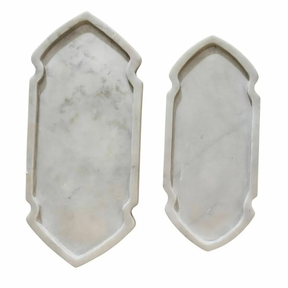 Wie von der Natur gezeichnet – und von der Formensprache des Orients veredelt. Dieses Tablett-Set aus reinem Marmor zieht die Blicke auf sich, ohne sich aufzudrängen. Die sanft geschwungene Silhouette erinnert an kunstvoll gestaltete Portale fernöstlicher Paläste, während die kühle Haptik und die individuellen Aderungen des Steins für eine ruhige, zeitlose Aura sorgen. Ob als Bühne für Duftkerzen, Schmuck oder kleine Köstlichkeiten – jedes Tablett bringt seine ganz eigene Geschichte mit. Kein Stück gleicht dem anderen – dafür sorgt die Einzigartigkeit des Natursteins.