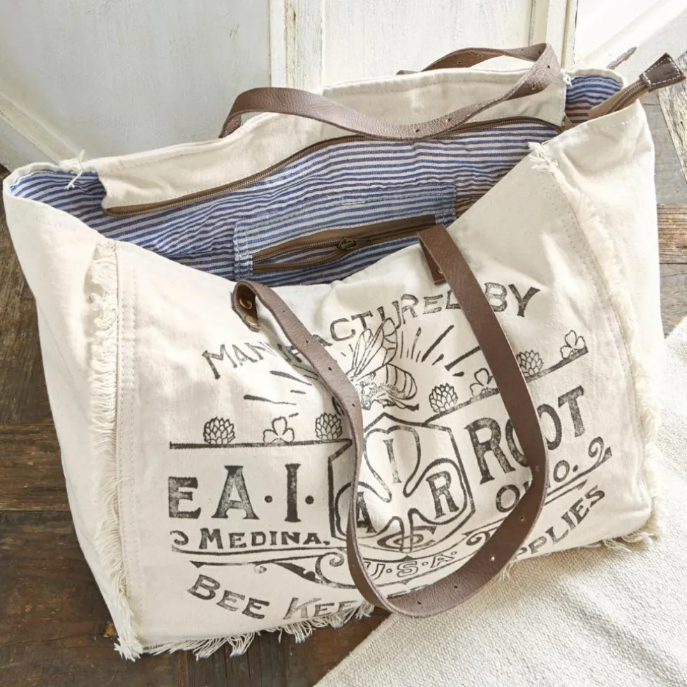 Frisch, lässig und casual – diese schicke Tasche läutet die neue Saison perfekt ein. Der helle Farbton wirkt rein und sportlich. Ein raffiniertes Detail sind die modisch ausgefransten Elemente. Dazu setzt der nostalgische Vintage-Print einen gekonnten Akzent. Das großzügige Modell besteht aus reiner Baumwolle mit stabilen Henkeln aus echtem Büffelleder. Das blau-weiß gestreifte Innenfutter setzt einen schönen Kontrast zum hellen Design. Ein kleines Innenfach mit Reißverschluss bietet einen sicheren Platz für Schlüssel, Geldbeutel und Co. Sie ist der ideale Begleiter für Spaziergänge in der Frühlingssonne, einen gemütlichen Marktbummel, den Wochenendausflug oder ein Kaffeetreffen mit Freunden in der Stadt. So trendbewusst kann der Frühling kommen!