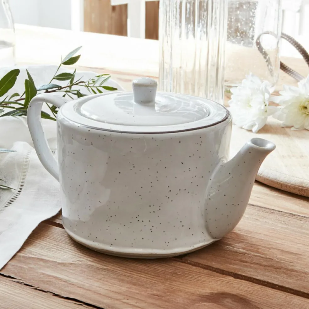 Ein zeitloses Lieblingsstück, mit dem Sie jede Tasse Tee als bewusste Auszeit zelebrieren. Die formschöne Teekanne besteht aus Steinzeug, das mit handgetöpfertem Charme verzaubert. Sie ist bewusst ein wenig uneben gehalten, um den ursprünglichen und leicht mediterranen Charakter zu wahren. Genießen Sie hiermit am Frühstückstisch Ihren Tee, feiern Sie die Tea Time mit Häppchen und Kuchen oder lassen Sie sich abends einen beruhigenden Kräutertee daraus schmecken. Natürlich können Sie in diese Kanne auch allerhand andere Getränke einfüllen und innen wie außen genießen. Oder stellen Sie sie einfach in ein hübsches Regal und bewundern sie die wunderbare Optik und Form dieser Teekanne. Die attraktive und stilvolle Kanne ist einfach an jedem Ort und zu jeder Jahreszeit ein wunderbarer Begleiter. Sie passt wundervoll zum großen Geschirrset 16875 und zu ebenfalls erhältlichen Zuckerdose und Milchkännchen (19234).