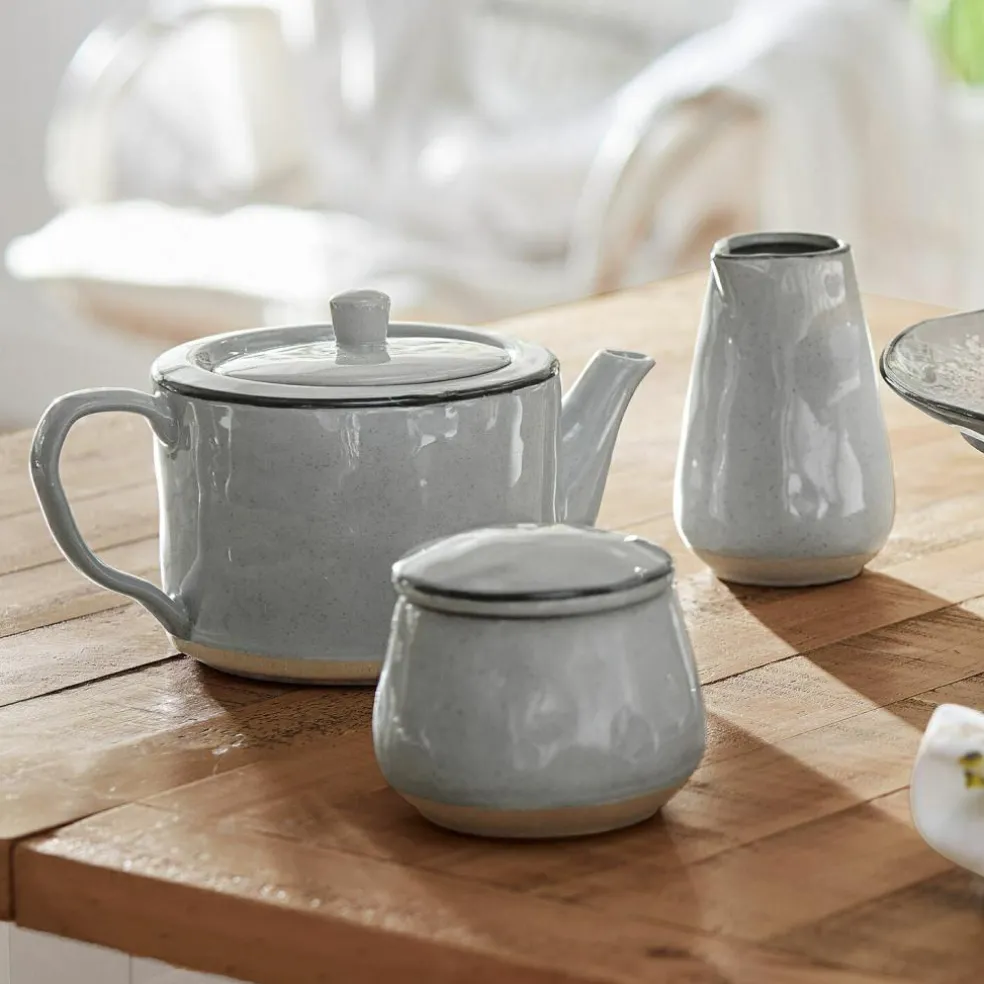 Ein zeitloses Lieblingsstück, mit dem Sie jede Tasse Tee als bewusste Auszeit zelebrieren. Die formschöne Teekanne besteht aus Steinzeug, das mit handgetöpfertem Charme verzaubert. Sie ist bewusst ein wenig uneben gehalten, um den ursprünglichen und leicht mediterranen Charakter zu wahren. Genießen Sie hiermit am Frühstückstisch Ihren Tee, feiern Sie die Tea Time mit Häppchen und Kuchen oder lassen Sie sich abends einen beruhigenden Kräutertee daraus schmecken. Natürlich können Sie in diese Kanne auch allerhand andere Getränke einfüllen und innen wie außen genießen. Oder stellen Sie sie einfach in ein hübsches Regal und bewundern sie die wunderbare Optik und Form dieser Teekanne. Die attraktive und stilvolle Kanne ist einfach an jedem Ort und zu jeder Jahreszeit ein wunderbarer Begleiter. Sie passt wundervoll zum großen Geschirrset 16875 und zu ebenfalls erhältlichen Zuckerdose und Milchkännchen (19234).