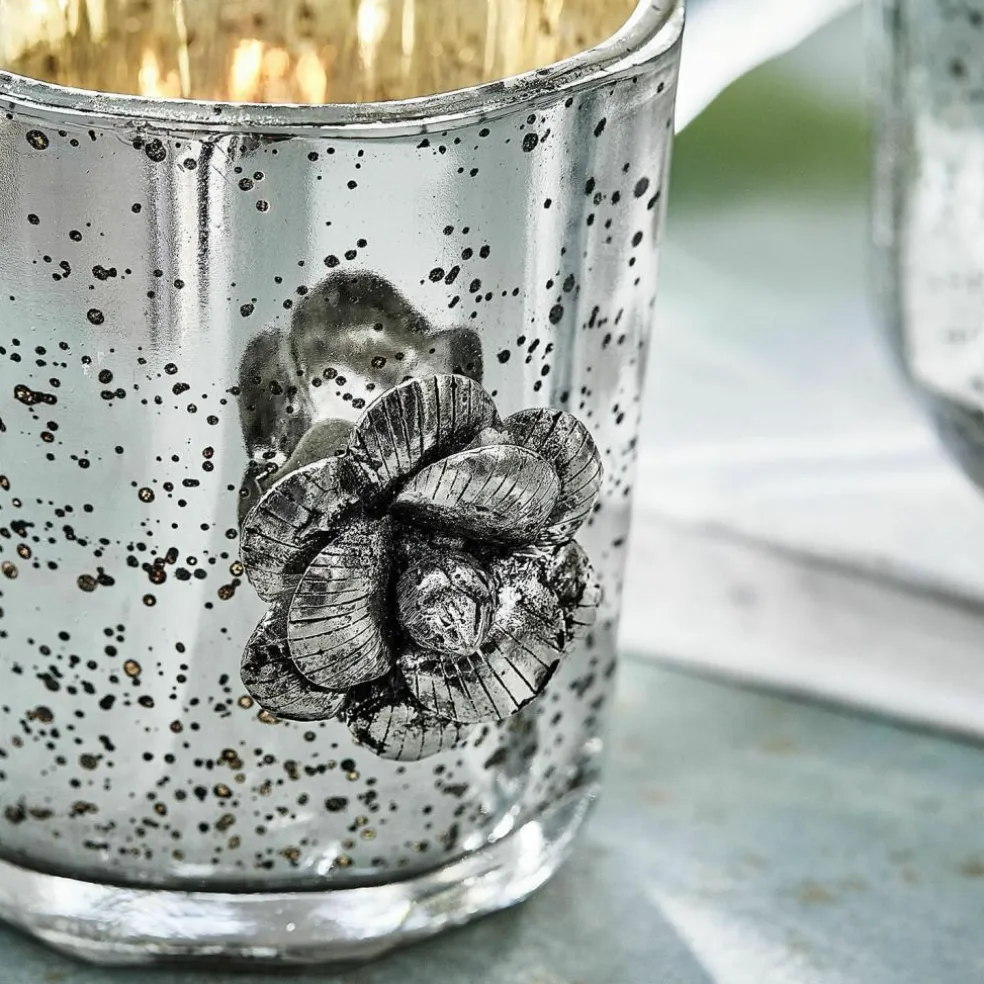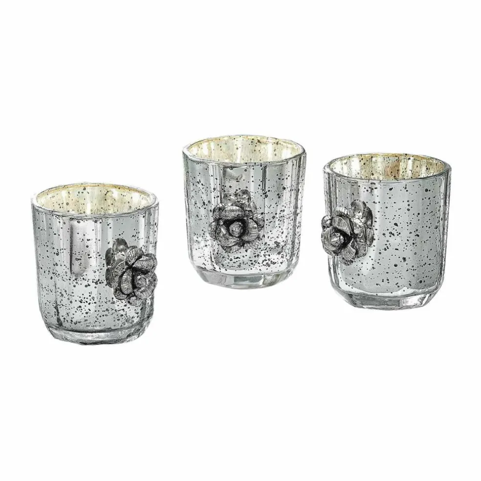 Verleihen Sie Ihrem Zuhause eine besondere Atmosphäre mit diesem edlen Teelichthalter-Set. Jedes Stück ist aus mundgeblasenem Glas gefertigt und mit einem bezaubernden Bauernsilber-Finish veredelt. Die zarten Rosen aus Messing, die den Teelichthaltern einen Hauch von Vintage-Romantik verleihen, machen das Set zu einem Highlight auf jeder Tafel oder Fensterbank. Ob in der dunklen Jahreszeit oder bei besonderen Anlässen – das sanfte Licht, das durch das silberne Finish schimmert, bringt Wärme und Gemütlichkeit in jeden Raum. Dank der zeitlosen Kombination aus Glas und Metall wird dieses Set zu einem vielseitigen Schmuckstück für Ihr Zuhause.