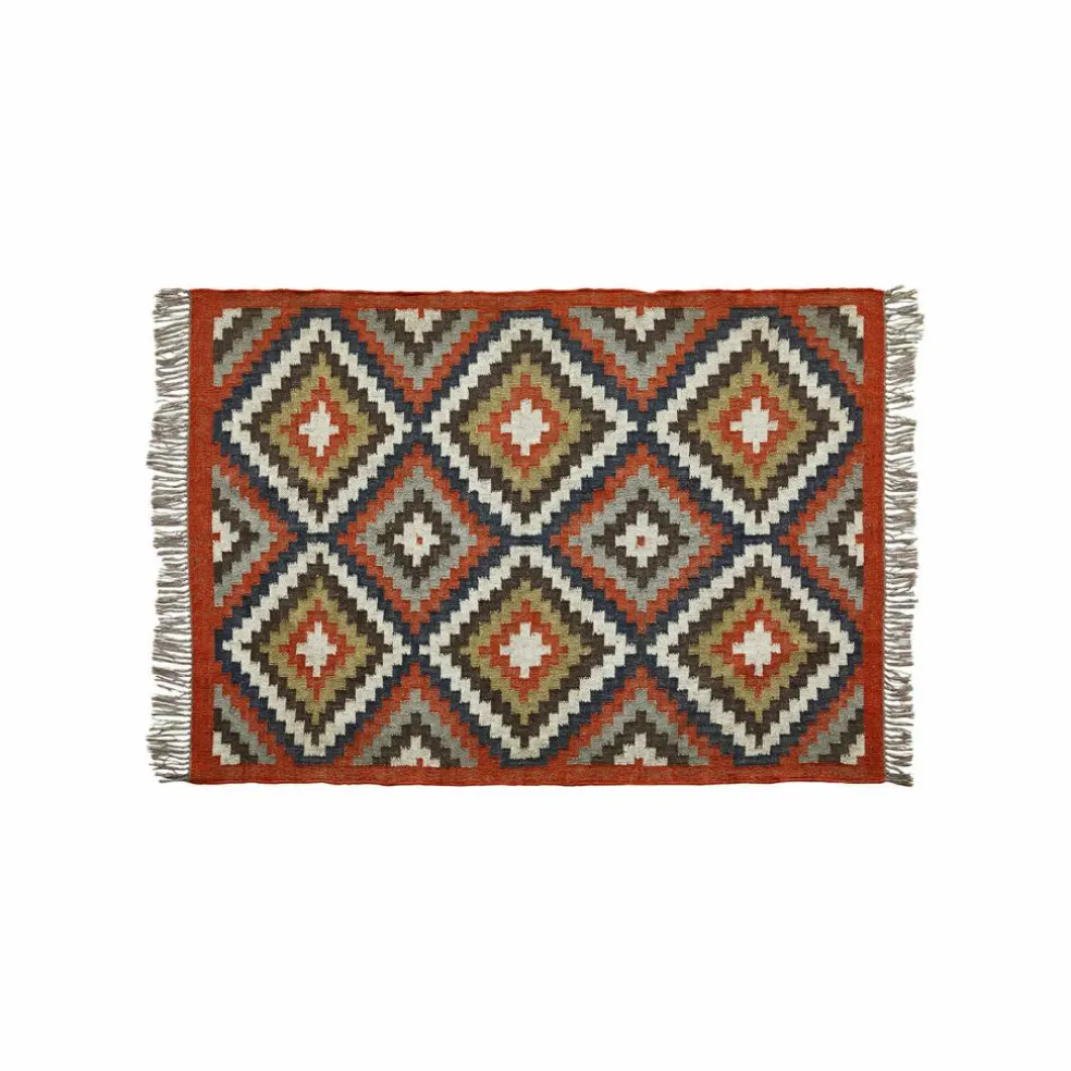 Dieser hochwertige Teppich verbindet Tradition und Moderne auf gelungene Art und Weise. Denn während das grafische Rautenmuster orientalischen Ethno-Chic versprüht, begeistert das Gewebe aus Jute und Wolle mit behaglicher Natürlichkeit, die jetzt absolut im Trend ist. Das Jutegarn macht den Teppich besonders robust und widerstandsfähig, der Wollanteil schenkt die angenehm weiche Haptik und edle Optik. Auch die dekorativen Fransen an den schmalen Kanten dürfen für den stilvollen Auftritt nicht fehlen. Wenn Sie einen lebendigen Einrichtungsstil mögen, sollten Sie diesen außergewöhnlichen Darsteller in kräftigem Farbspiel mit einbeziehen. Er sorgt nicht nur für gute Laune, sondern macht jeden Raum unverwechselbar – ob im Entree, im Arbeitszimmer oder im Wohnzimmer. Besonders schön harmoniert der Teppich mit rustikalen Dielenböden oder natürlich anmutenden Steinfliesen.