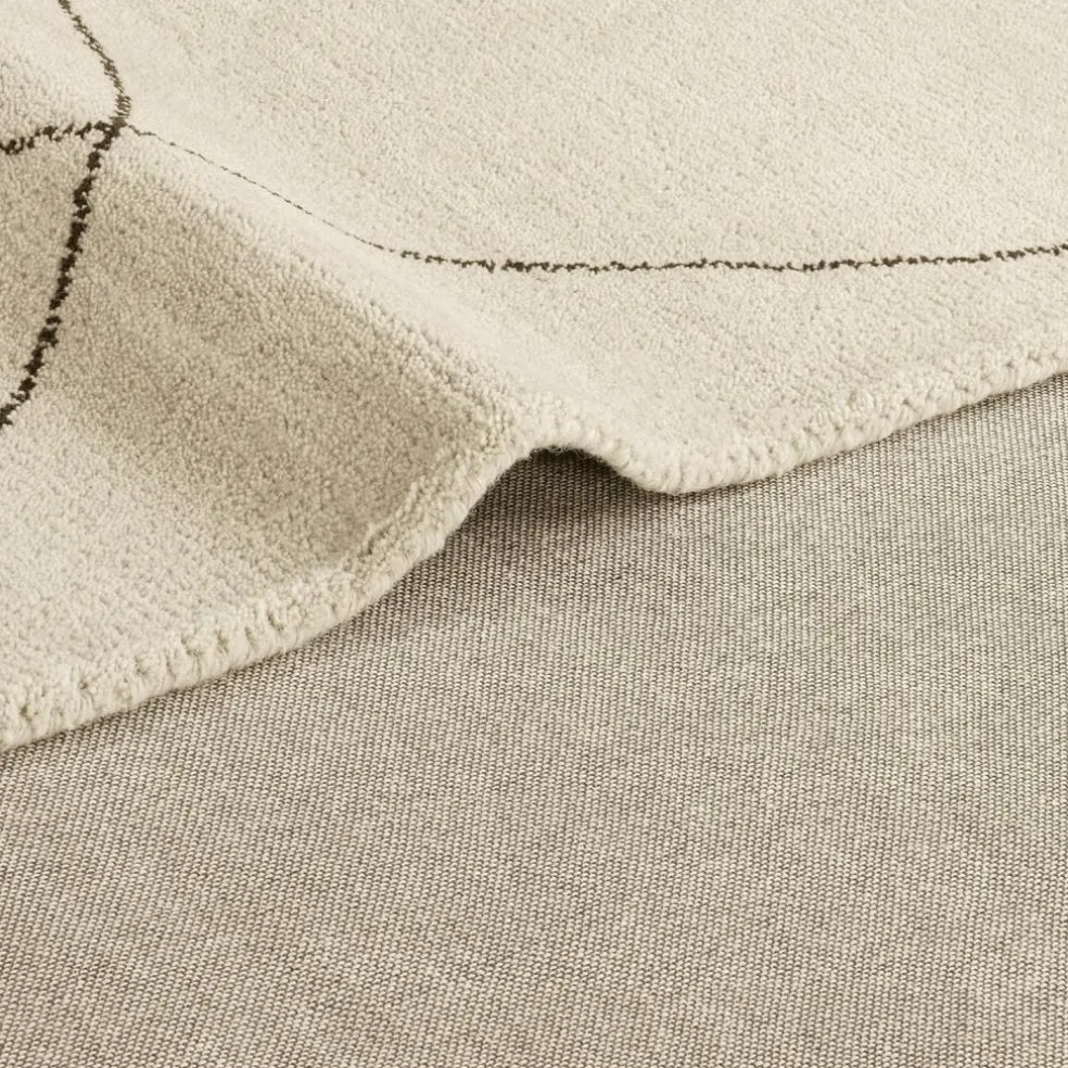 Ein Teppich, der Kunst und Gemütlichkeit vereint. Das organische, geschwungene Linienmuster verleiht ihm eine moderne Note, während die getuftete Wolle mit ihrer weichen Struktur pure Behaglichkeit ausstrahlt. Sein dezentes Farbspiel passt sich mühelos verschiedenen Einrichtungsstilen an, ob skandinavisch, minimalistisch oder zeitgenössisch. Die feine Wollstruktur sorgt für ein angenehmes Laufgefühl und bringt natürliche Wärme in den Raum. Ein stilvolles Wohnaccessoire, das Ruhe, Ästhetik und Komfort in Einklang bringt.