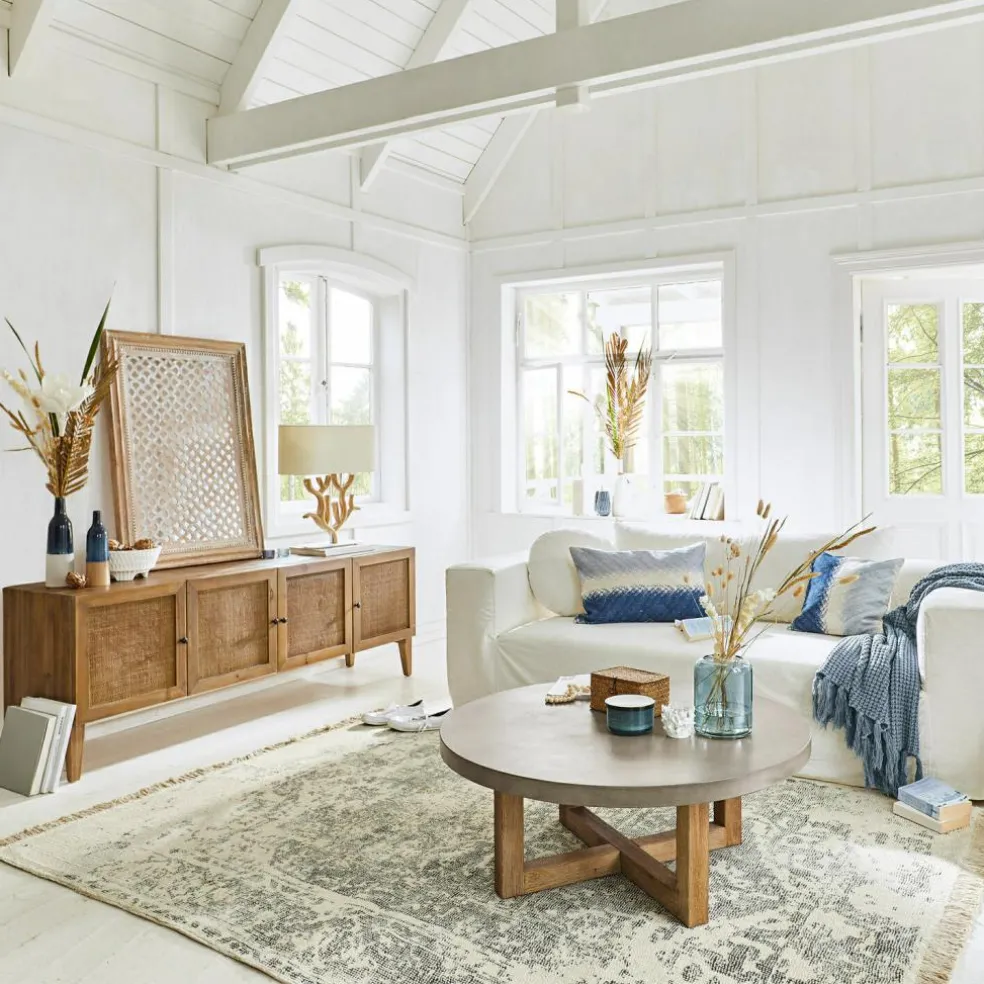 Egal zu welcher Jahreszeit – zuhause möchte man es immer stilvoll und gemütlich haben. Neben Kissen und Decken tragen auch Teppiche in einem hohen Maß zum Wohlfühlen bei. Ganz so wie dieses edle Modell, das nicht nur fantastisch aussieht, sondern auch mit einem natürlichen Garnmix verwöhnt. Durch das getuftete Herstellungsverfahren besticht er mit einem strapazierfähigen, velourigen Kurzflor, dessen wohltuender Massage-Effekt nicht nur Ihren Füßen Vergnügen bereitet. Das aufgedruckte Muster in verwaschener Optik macht den Teppich zu einem Blickfang mit Vintage-Charme. Offene Fransenkanten setzen ein gelungenes Finish. Ein Lieblingsstück, das Stil, Alltagstauglichkeit und ein Hauch von Exklusivität vereint. Durch seine dezente Farbigkeit ist der Teppich wunderbar anpassungsfähig und in vielen Räumen einsetzbar – ob im Wohnzimmer, Arbeitszimmer oder im Schlafbereich.