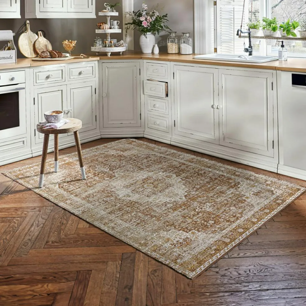 Verleihen Sie Ihrem Wohnraum eine elegante Note mit diesem flachgewebten Teppich. Die harmonischen Erdtöne und das kunstvoll gestaltete Muster schaffen eine warme und einladende Atmosphäre. Durch die flache Webart ist der Teppich besonders pflegeleicht und strapazierfähig. Die weiche Haptik sorgt für zusätzlichen Komfort, während die detailreiche Gestaltung traditionelle Eleganz in Ihr Zuhause bringt. Ob im Wohnzimmer, Schlafzimmer oder Flur – dieser Teppich ist ein stilvoller Blickfang, der jedem Raum Charakter verleiht.