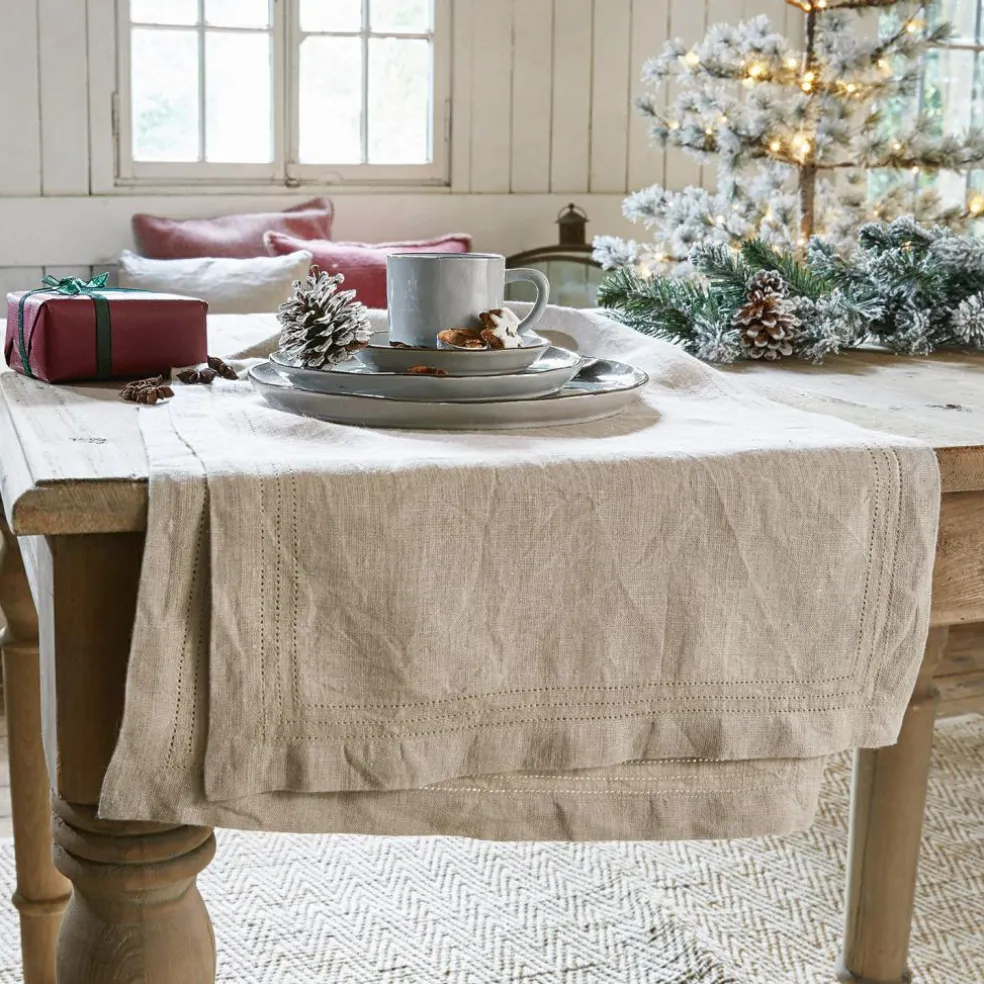 Tischläufer aus reinem Leinen zeugen von einem exquisiten Geschmack und einem besonderen Qualitätsanspruch. Dieses Modell präsentiert sich unverfälscht und absolut natürlich, wodurch es mit den unterschiedlichsten Einrichtungsstilen harmoniert. Der in drei Reihen verlaufende, sehr feine Lochssaum unterstreicht die schlichte Eleganz des Designs. Dank seiner pflegeleichten Eigenschaften ist dieser Tischläufer besonders langlebig und einfach zu reinigen. Schmücken Sie mit diesem einfarbigen Schmuckstück Ihre Festtafel zu jedem Anlass.